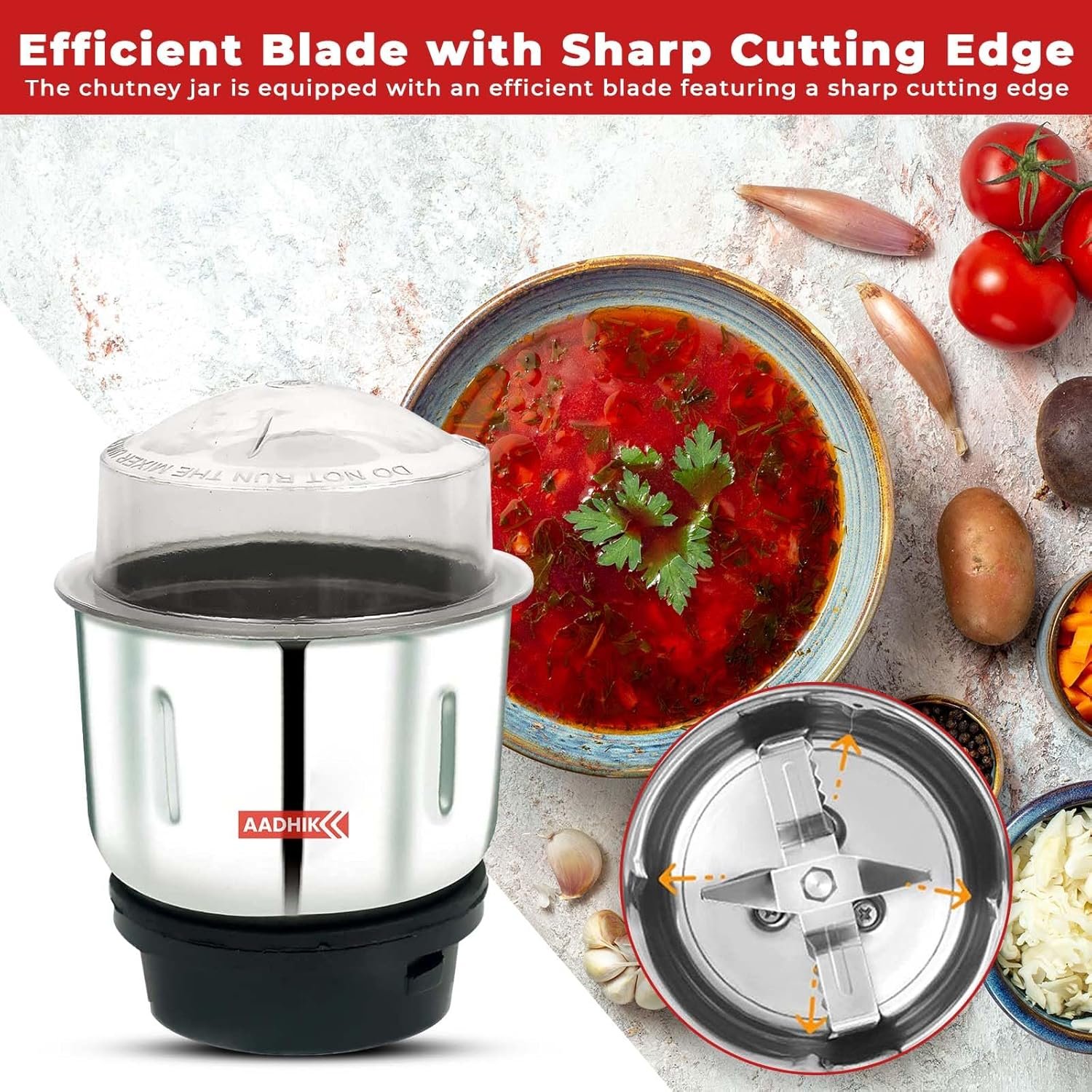 Efficient Blade with Sharp Cutting Edge: The chutney jar is equipped with an efficient blade featuring a sharp cutting edge, allowing you to achieve the perfect consistency in your chutneys and spice blends. Effortlessly create culinary masterpieces with precision grinding.