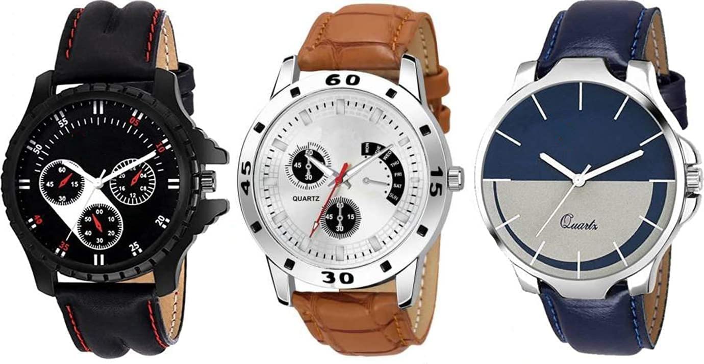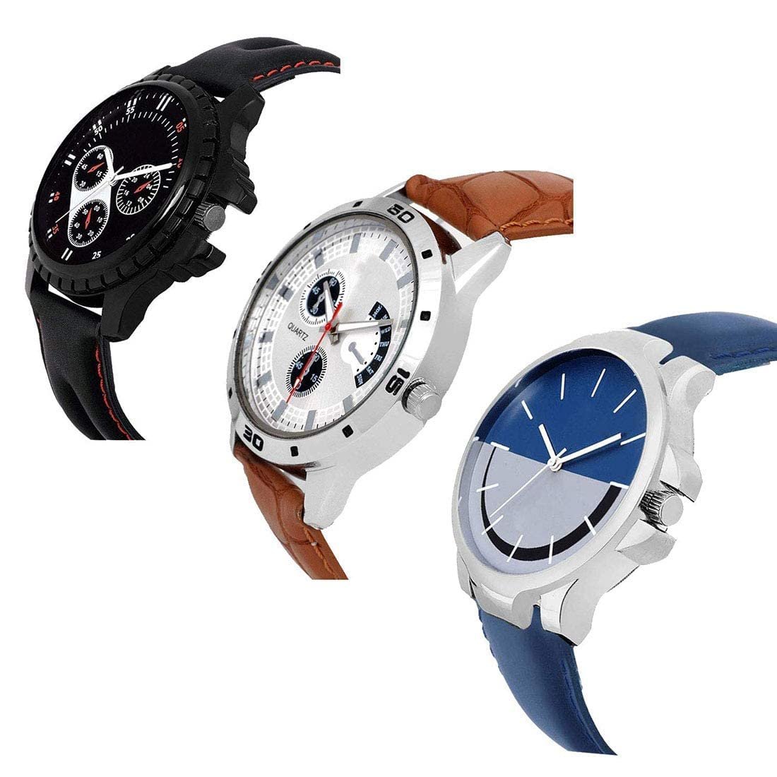 Acnos Multi-Color Premium Chronograph Design Leather Analog Combo Watches For Men And Watches, Boys (Pack Of 3)