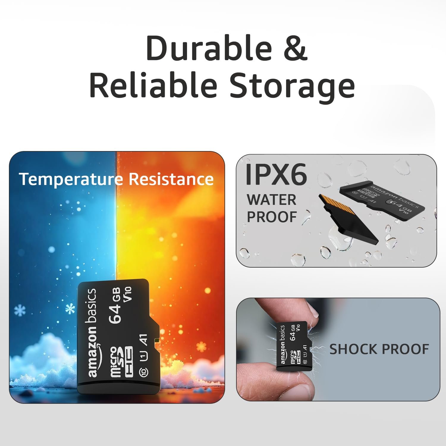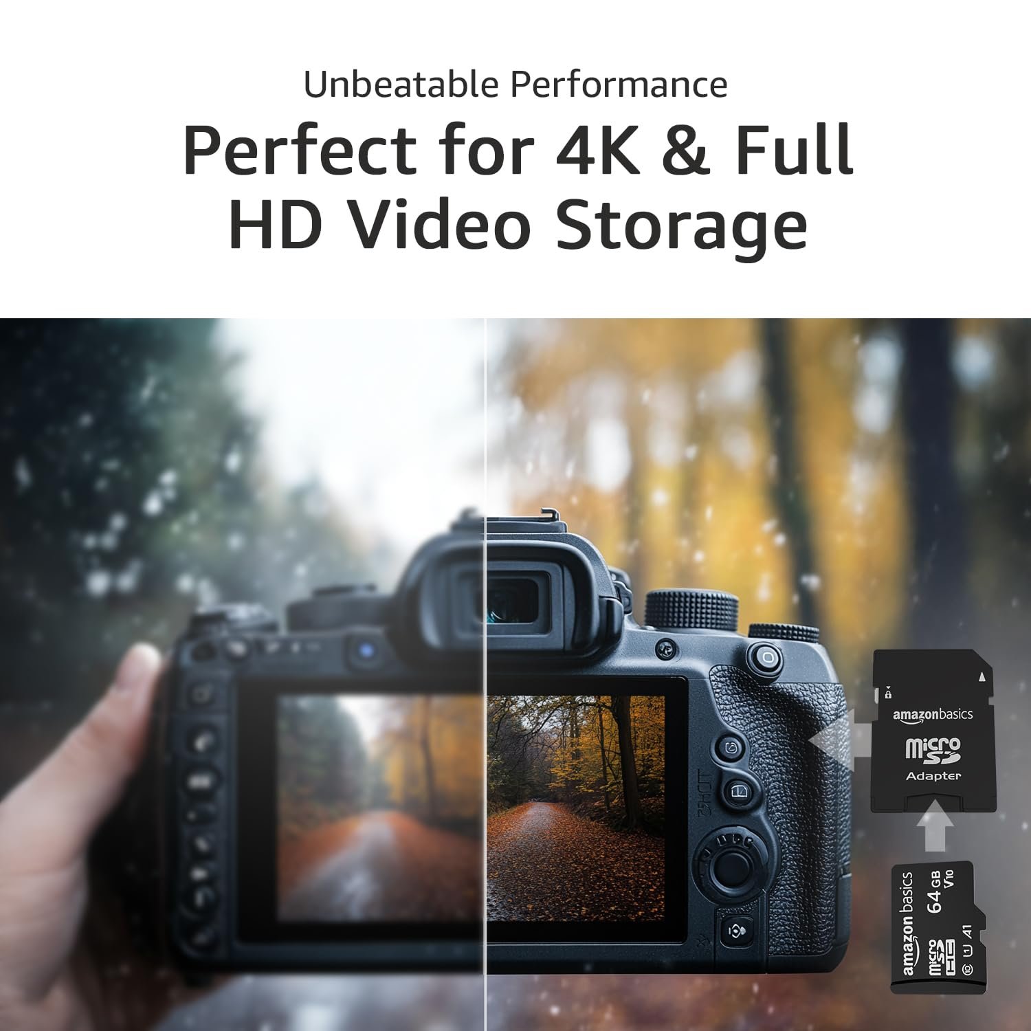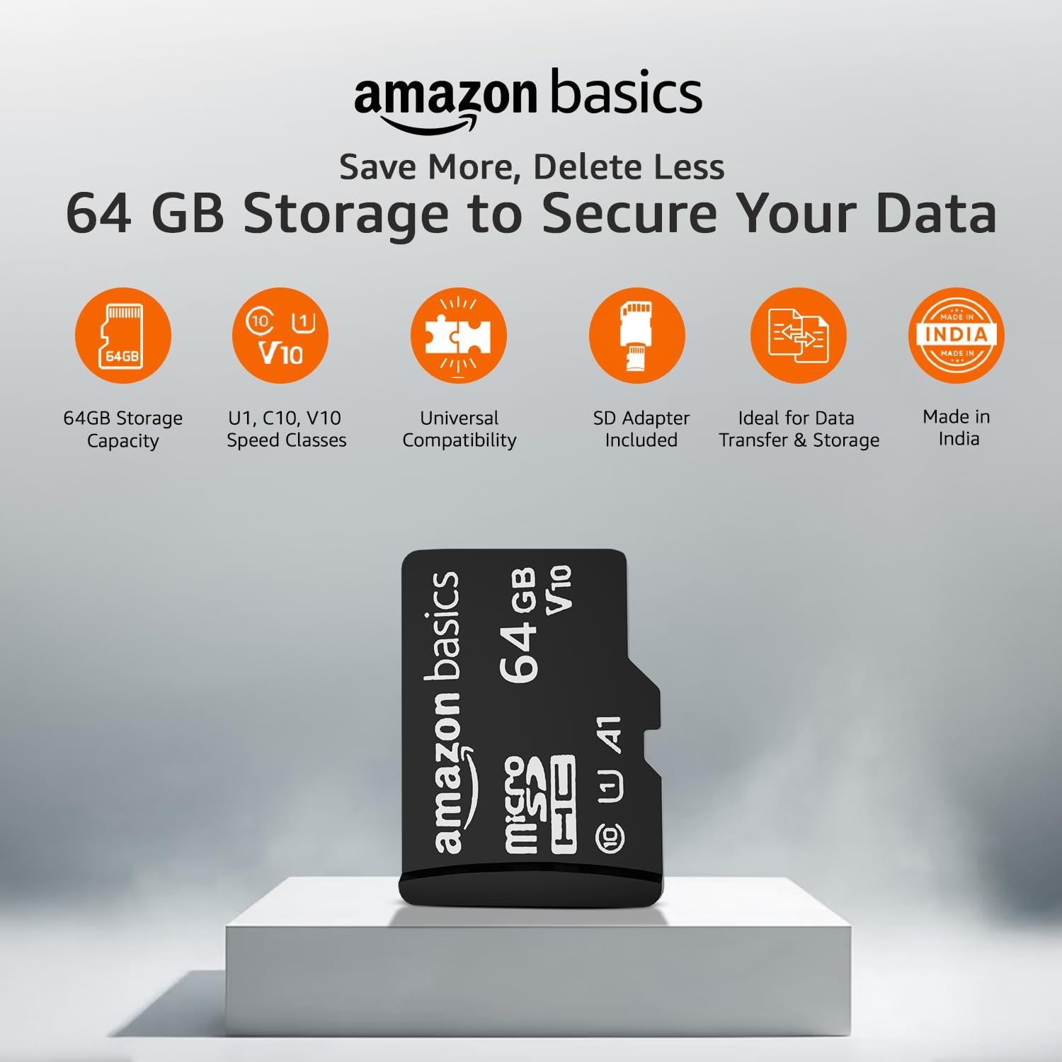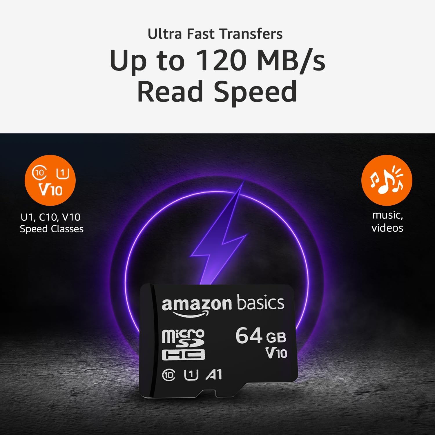 Amazon Basics 64 GB Micro SD Card with Adapter | Upto 120 MB/s | Class 10 | U1, C10, V10 Speed Classes
