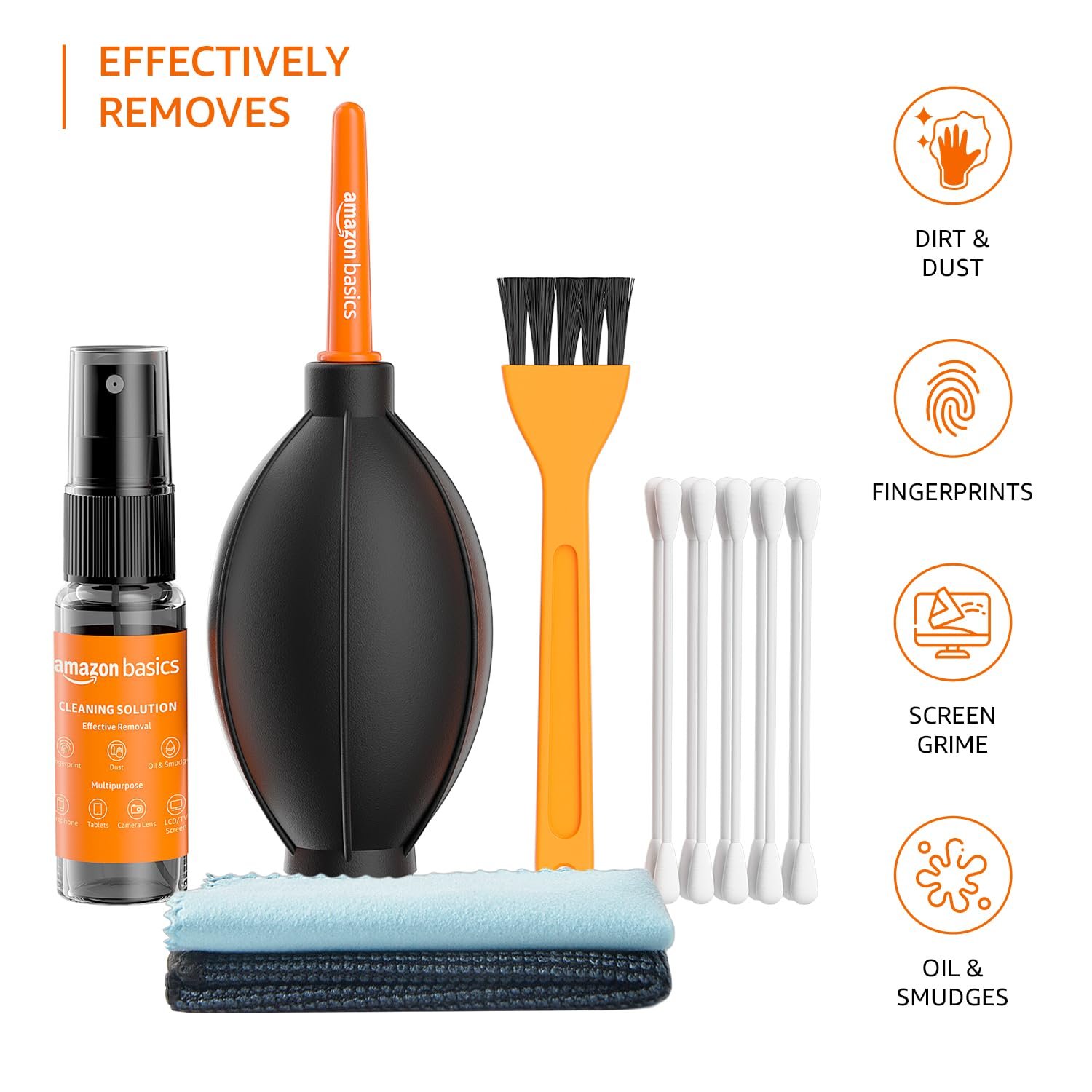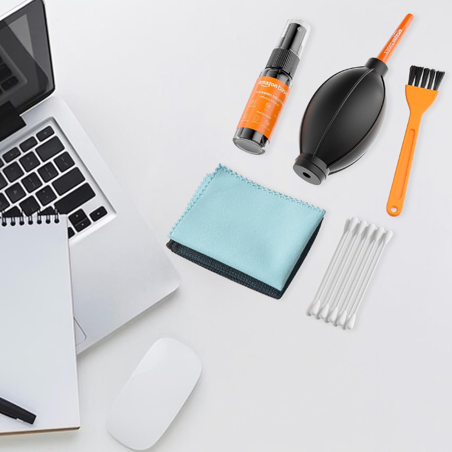 Amazon Basics Professional 6-in-1 Cleaning Kit for Laptops, Tablets, Smartphones, Cameras (Includes: Air Blower, Cotton Swabs, Suede + Plush Micro-Fiber Cloth, Cleaning Brush, Cleaning Solution)