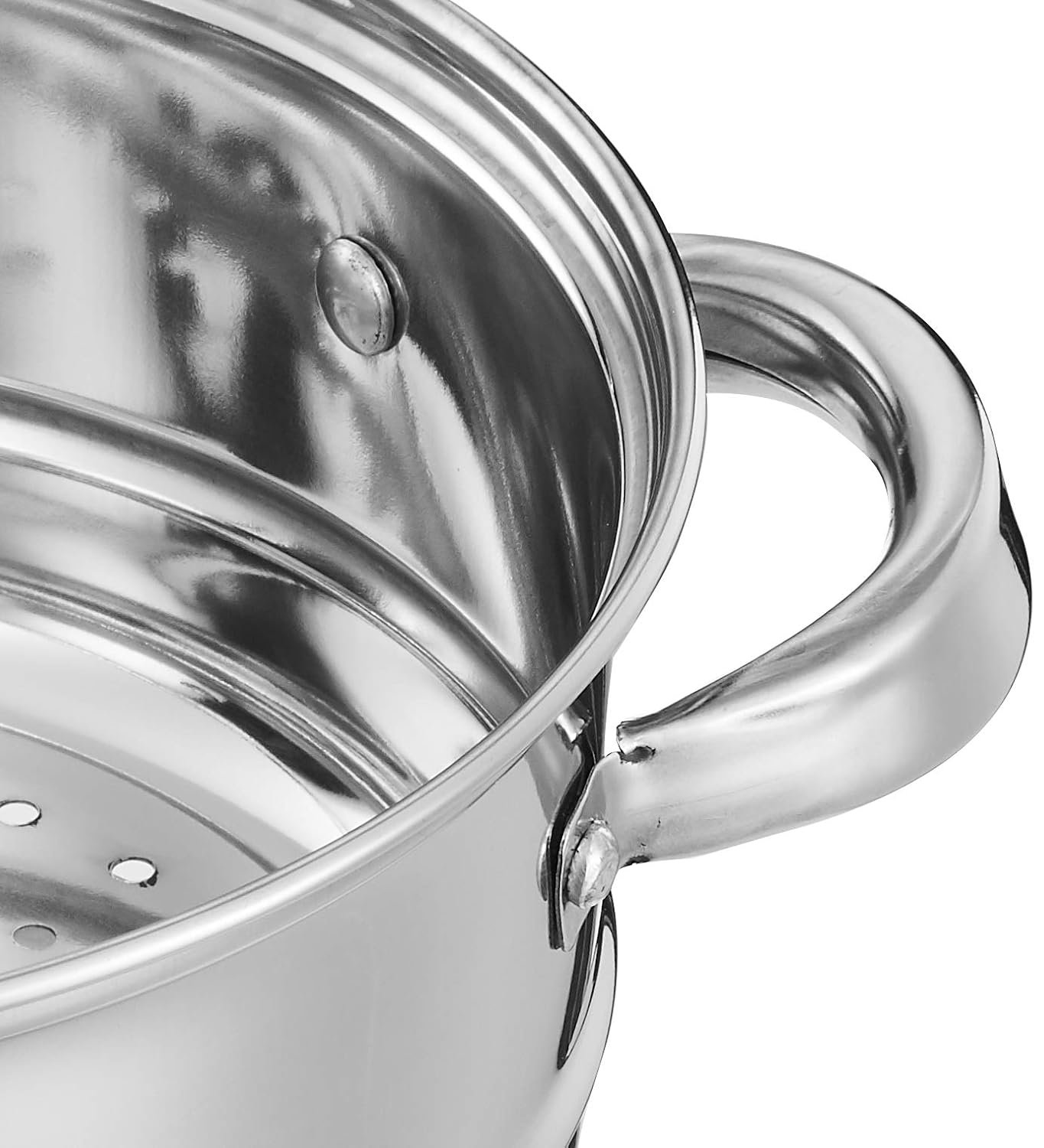 The steamer comes with rivetted handles that make it sturdy and durable. These also make it safe to handle during cooking.