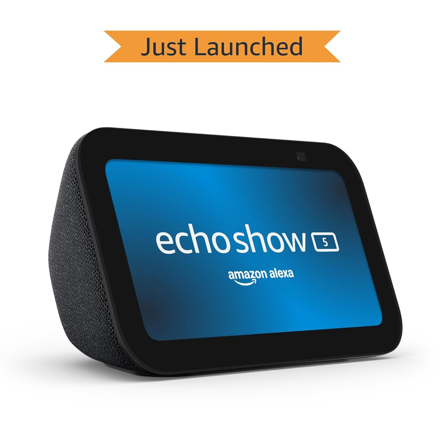 Amazon Echo Show 5 (latest model) | Smart display with Alexa, 2x bass speaker, clearer sound, camera for home monitoring, bluetooth | Charcoal