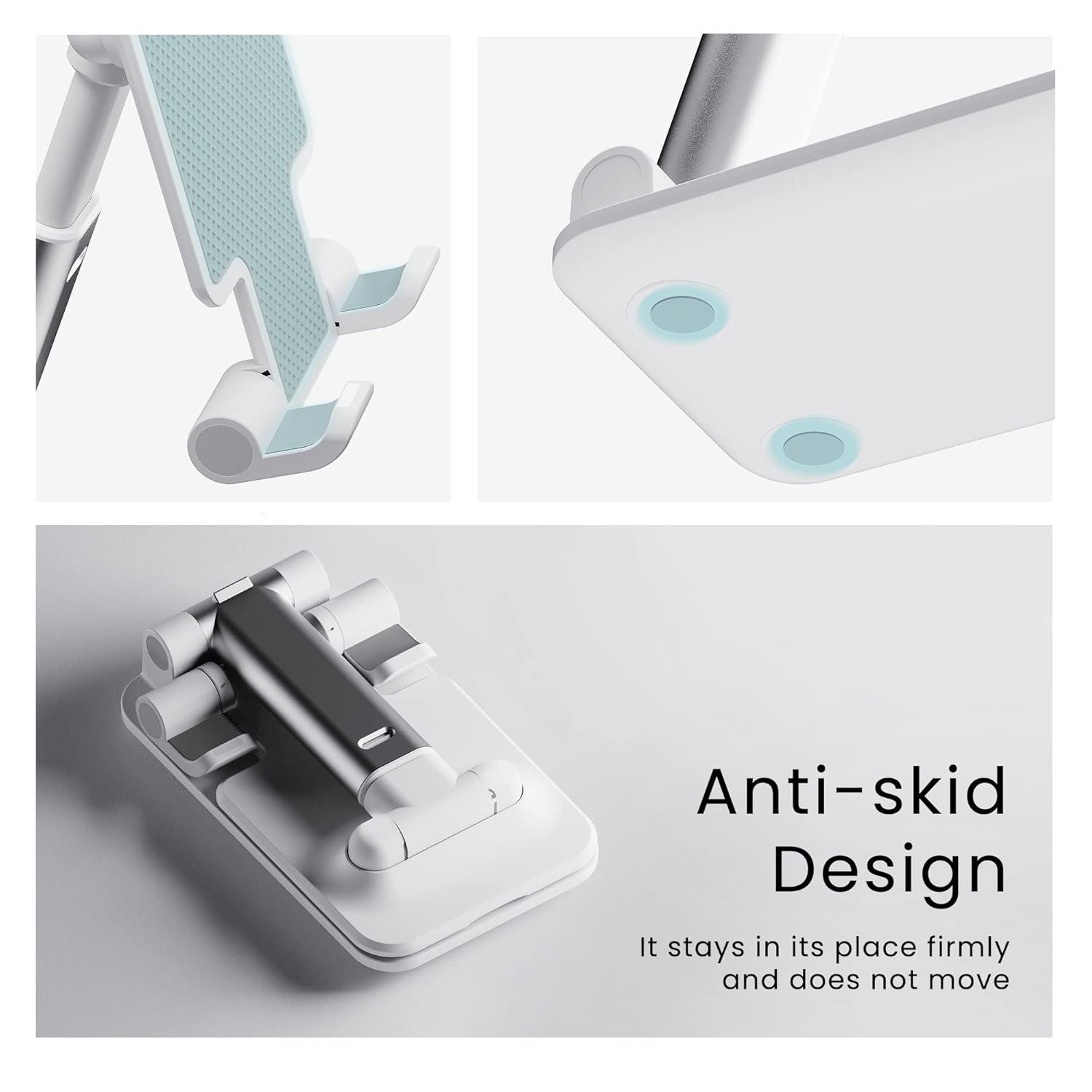 Ambrane Mobile Holding Tabletop Stand, 0-135 Perfect View, Height Adjustment, Wide Compatibility, Multipurpose, Anti-Skid Design (Twistand, White)