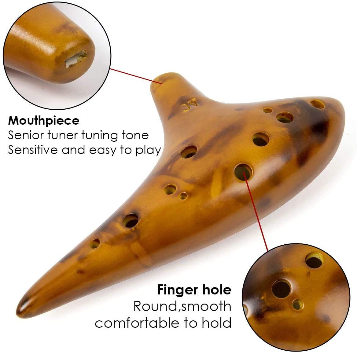 amiciSound 12 Hole Ocarina Alto C Key Flute Folk Musical Instrument with Wooden Glaze for Professionals(Ocarina for Professionals)