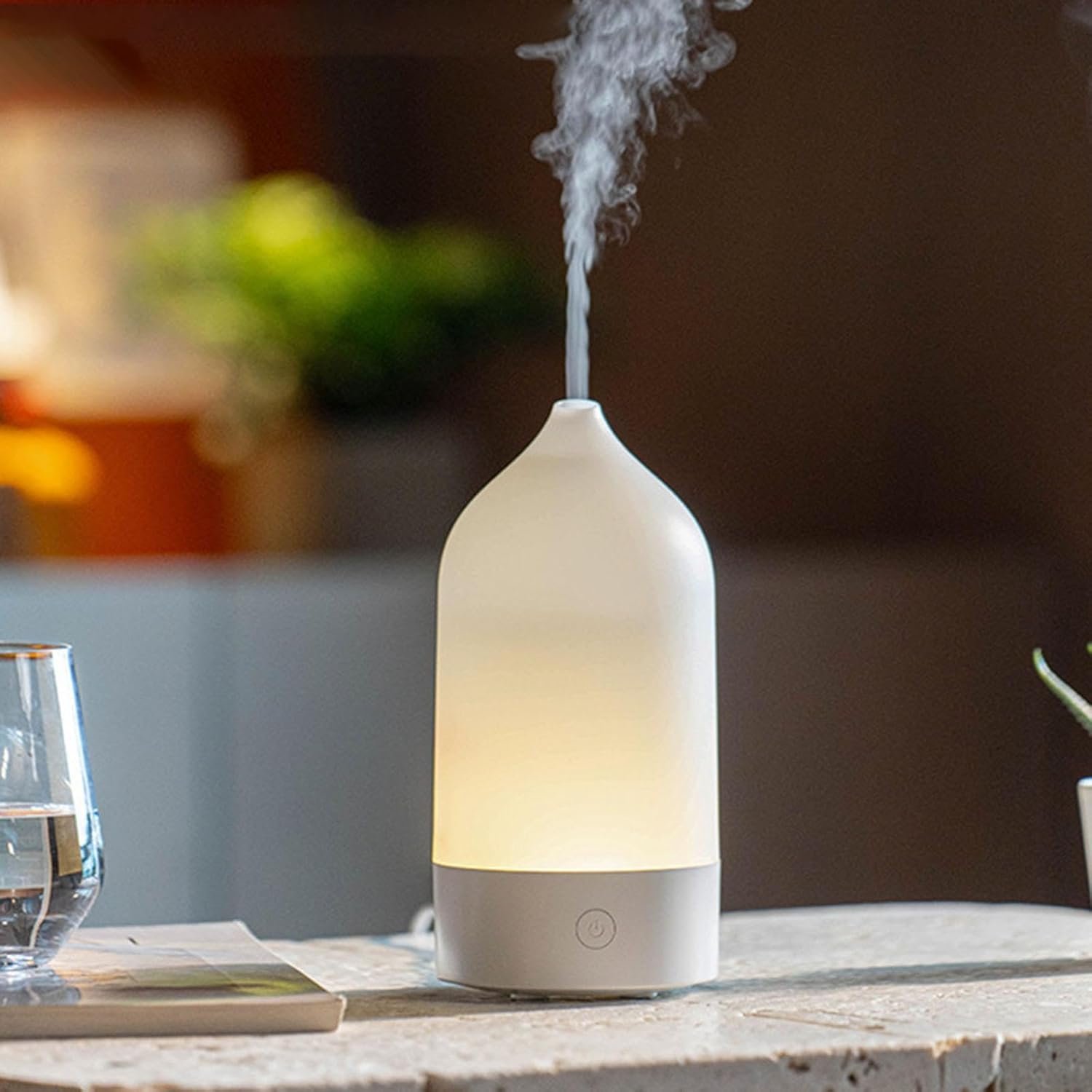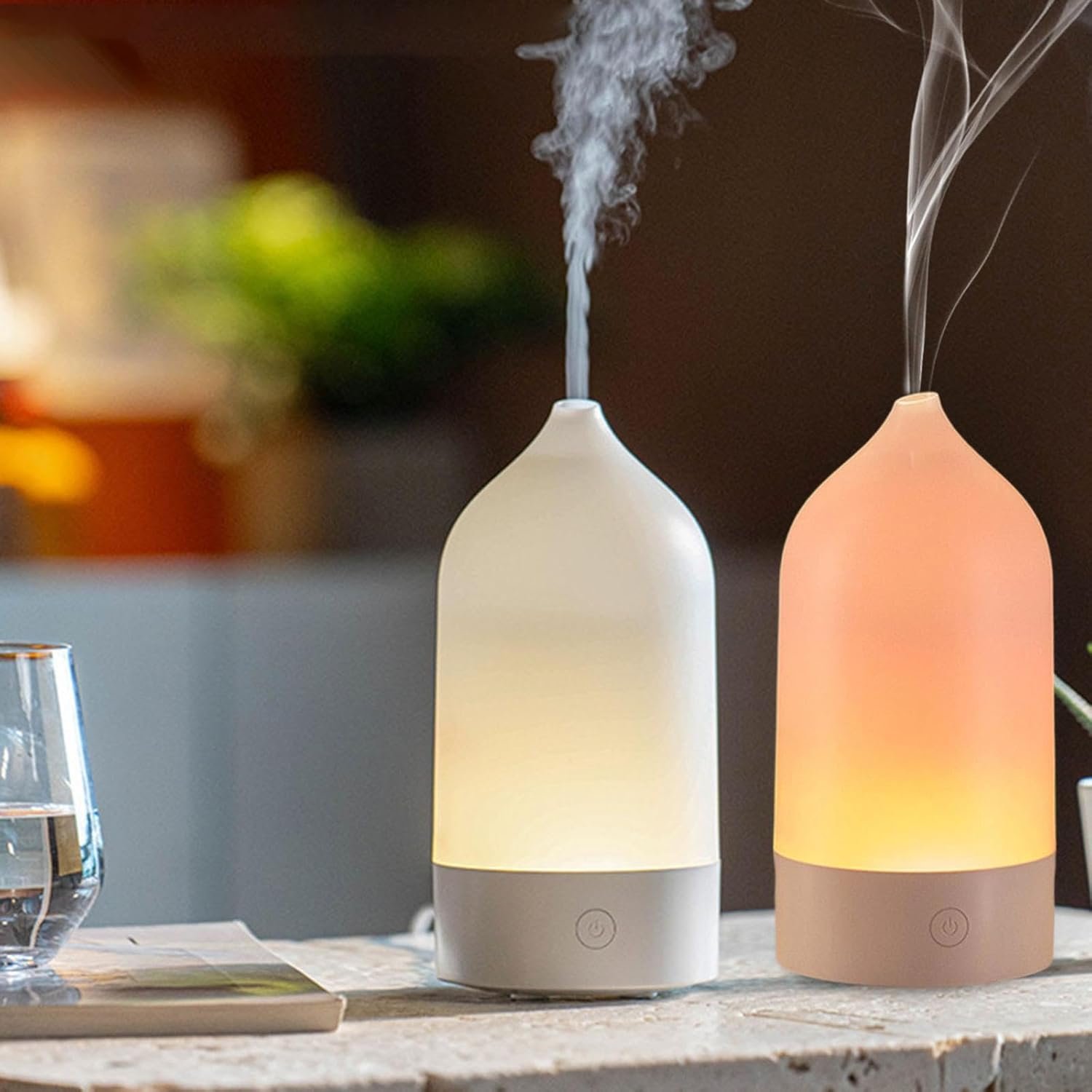 Warm And Colorful Lighting: This Aroma Diffuser Features A Warm Light Mode And A Color Cycling Mode, Suitable Use In Office Table Or Bedside Table In Bedroom, Small Space, Or In The Car
