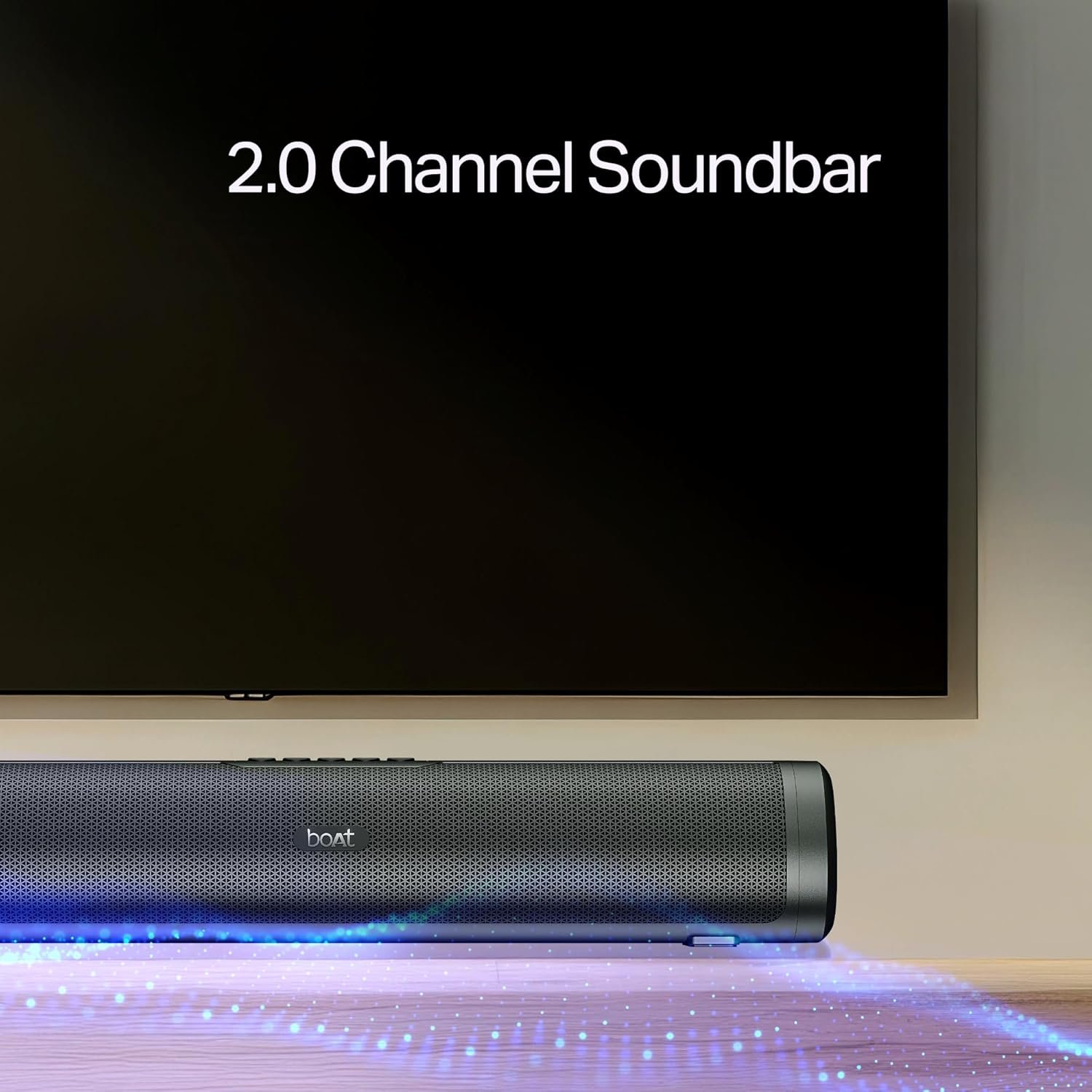 16W boAt Signature Sound: Upgrade your audio space with the powerful 16W Signature Sound of the boAt Aavante 2.0 150 Bluetooth Soundbar. Get lost in cinematic sound and energetic beats with its booming output.