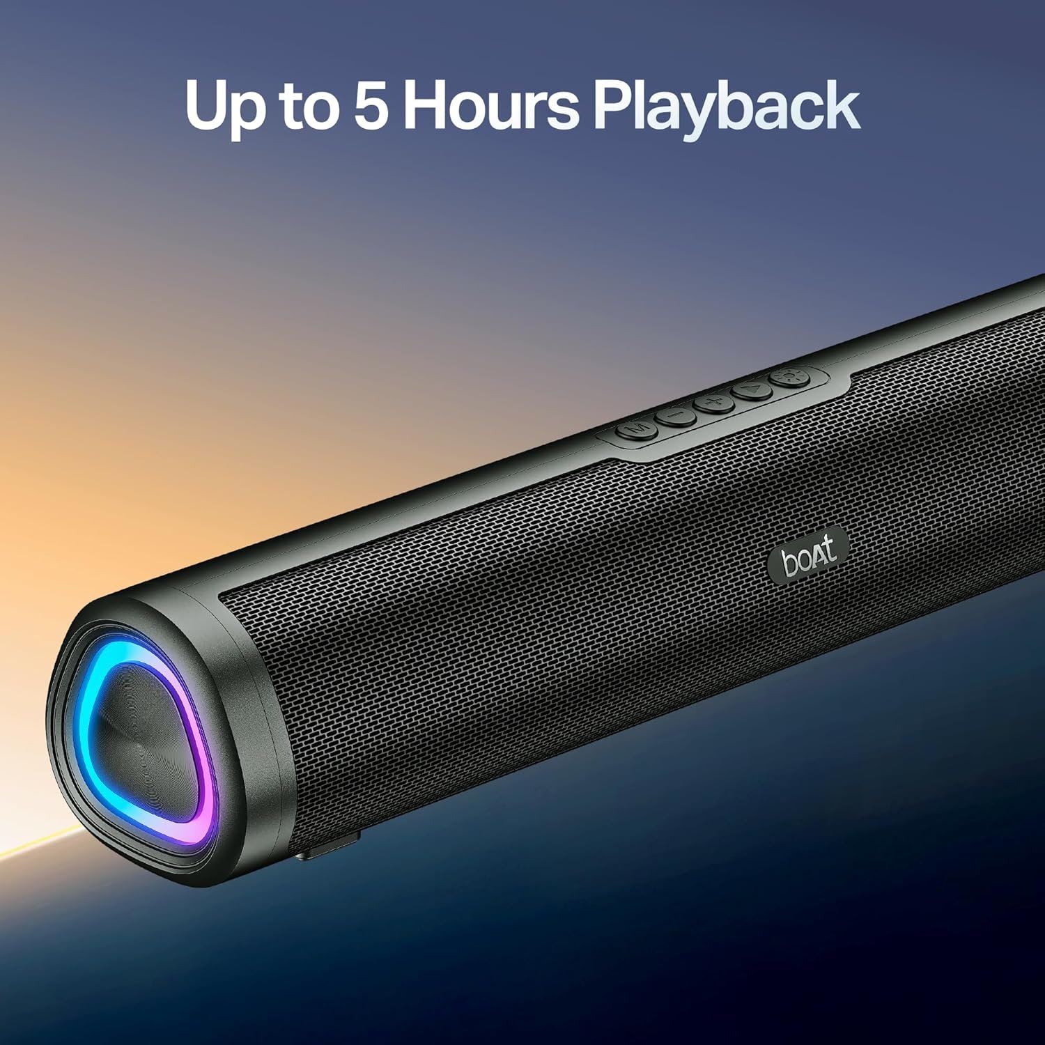 boAt 2025 Launch Aavante 2.0 150, 2.0 CH, 16W Signature Sound, RGB LEDs, Dual Full-Range Drivers, Upto 5H Battery, TWS, Multi Ports, Bluetooth Sound bar, Home Theatre Soundbar Speaker (Premium Black)