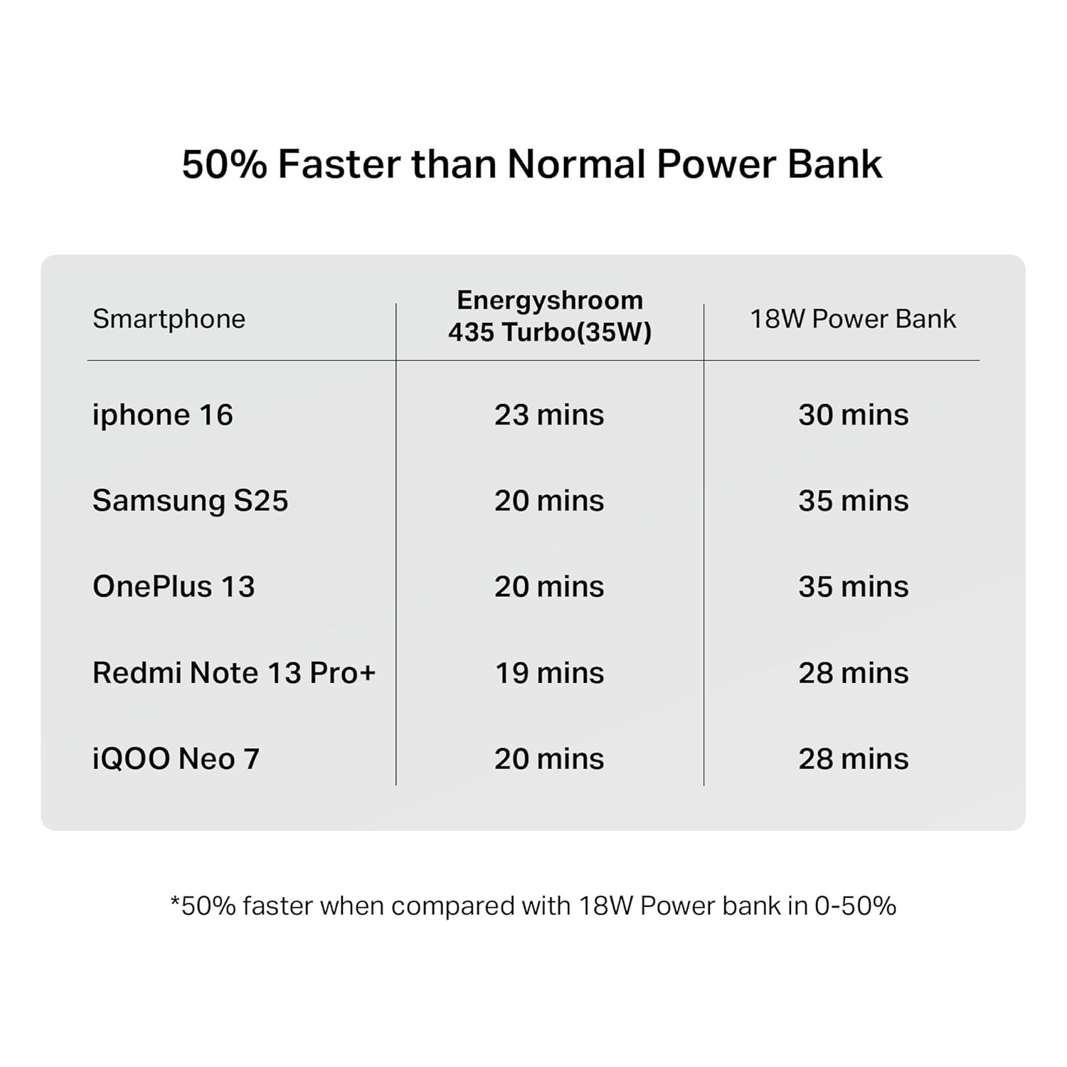 35W 2-Way Fast Charging Technology: Equipped with Quick Charge 3.0, Power Delivery, and Programmable Power Supply (PPS), the PB435 Turbo enables rapid and efficient charging for a wide range of devices.