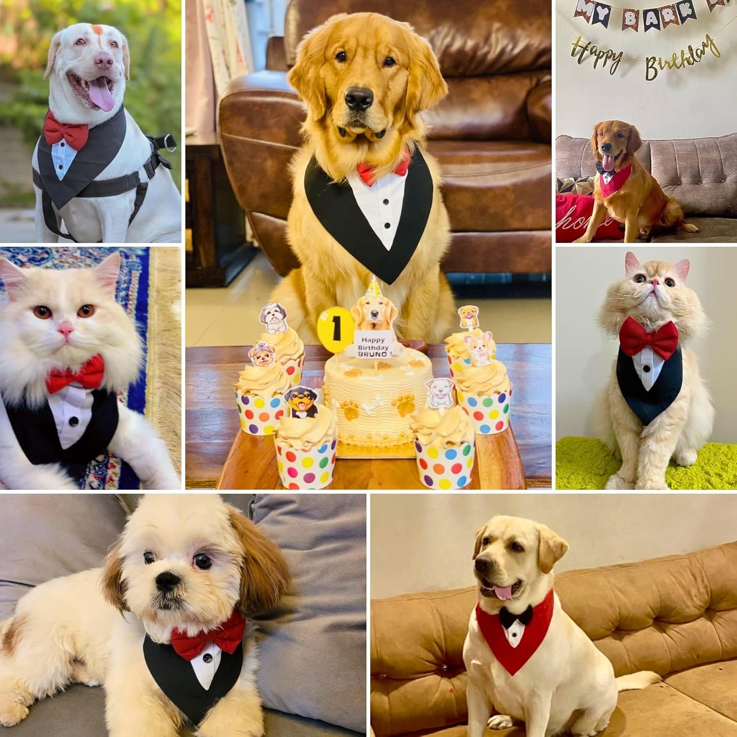 BURAQ Dog Tuxedo Bandana, Ideal for Dog Birthday Decorations, Adorable and Comfortable Pet Apparel (M – Red)