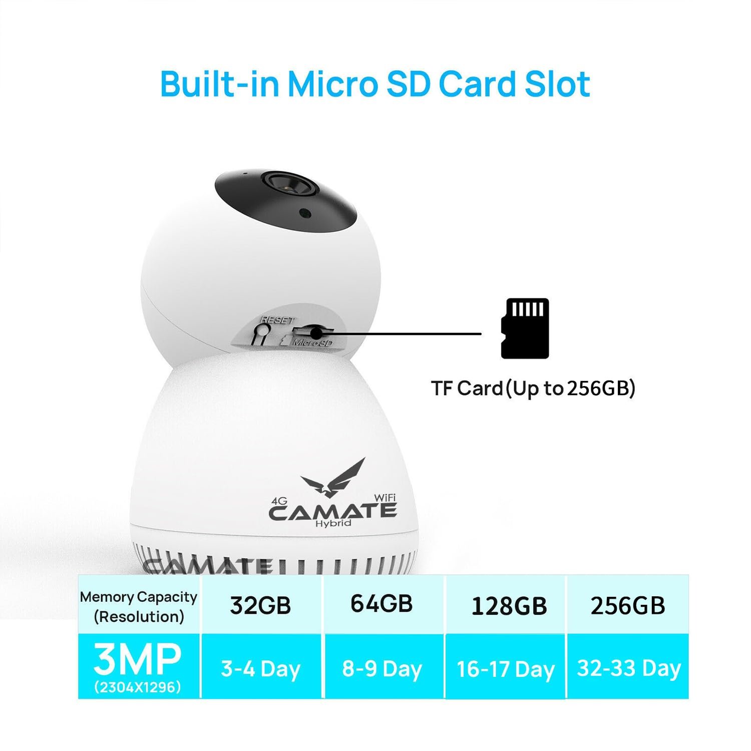 Camate Hybrid 4G Sim Based + Wi Fi Based 3MP Smart Indoor CCTV Camera | Baby Monitoring Surveillance | Motion Detection & Tracking | Night Vision | 2-Way Audio | Support 256GB Micro SD Card