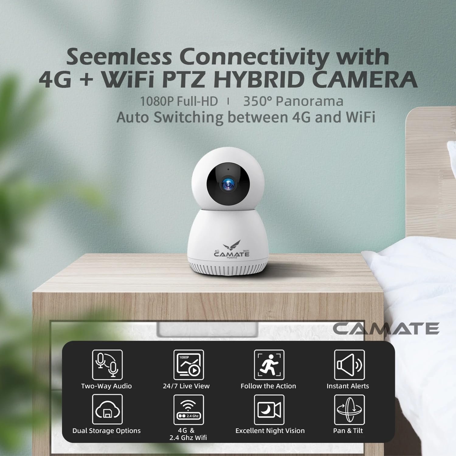 Be the first to review “Camate Hybrid 4G Sim Based + Wi Fi Based 3MP Smart Indoor CCTV Camera | Baby Monitoring Surveillance | Motion Detection & Tracking | Night Vision | 2-Way Audio | Support 256GB Micro SD Card”