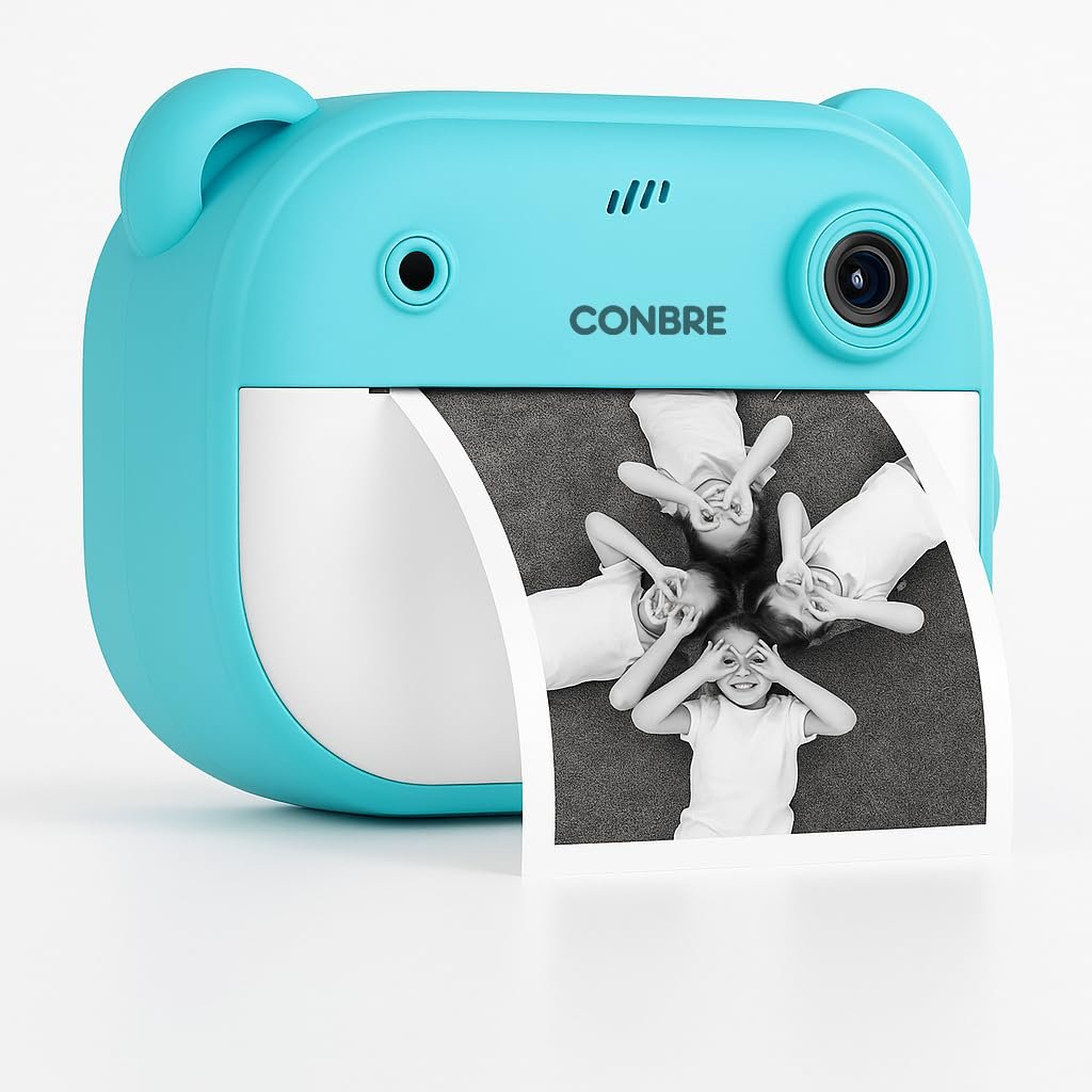 Conbre Kids Instant Print Camera with 4 Games – 3-in-1 Digital Camera for Boys & Girls Ages 3-12 | Print Photos & Record Videos | Supports 64GB SD, Gift-Ready – 2 Rolls (Teddy)