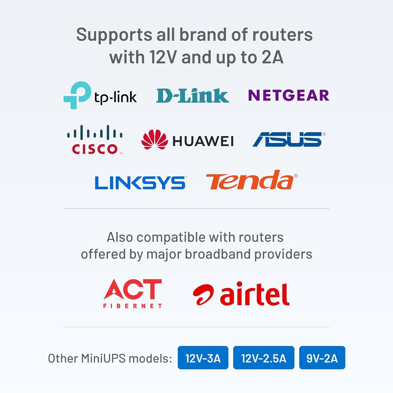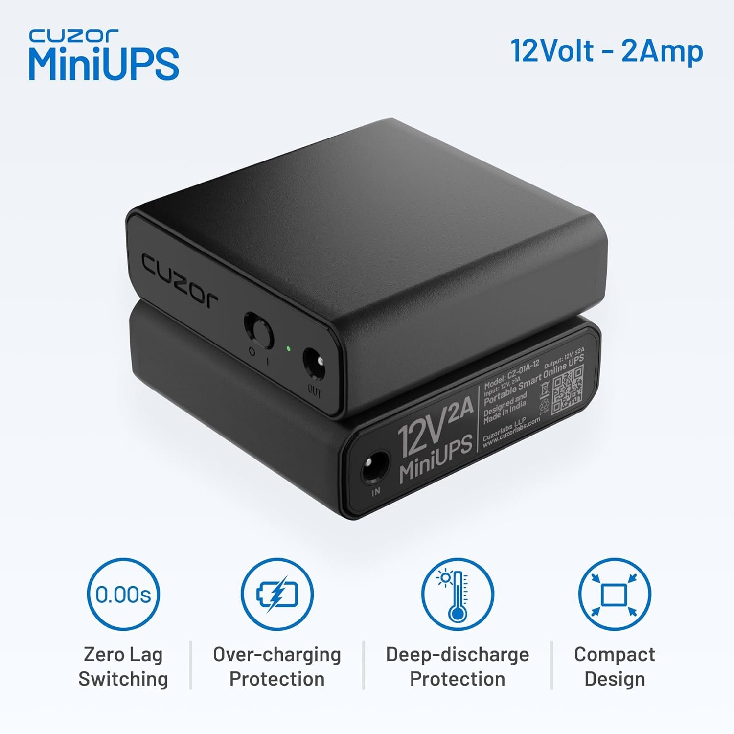 Cuzor Mini UPS 12V Router UPS up to 2A | Up to 5 Hours Backup | WiFi UPS Power Backup During powercuts | 2×2900 mAh | Mini ups for Router