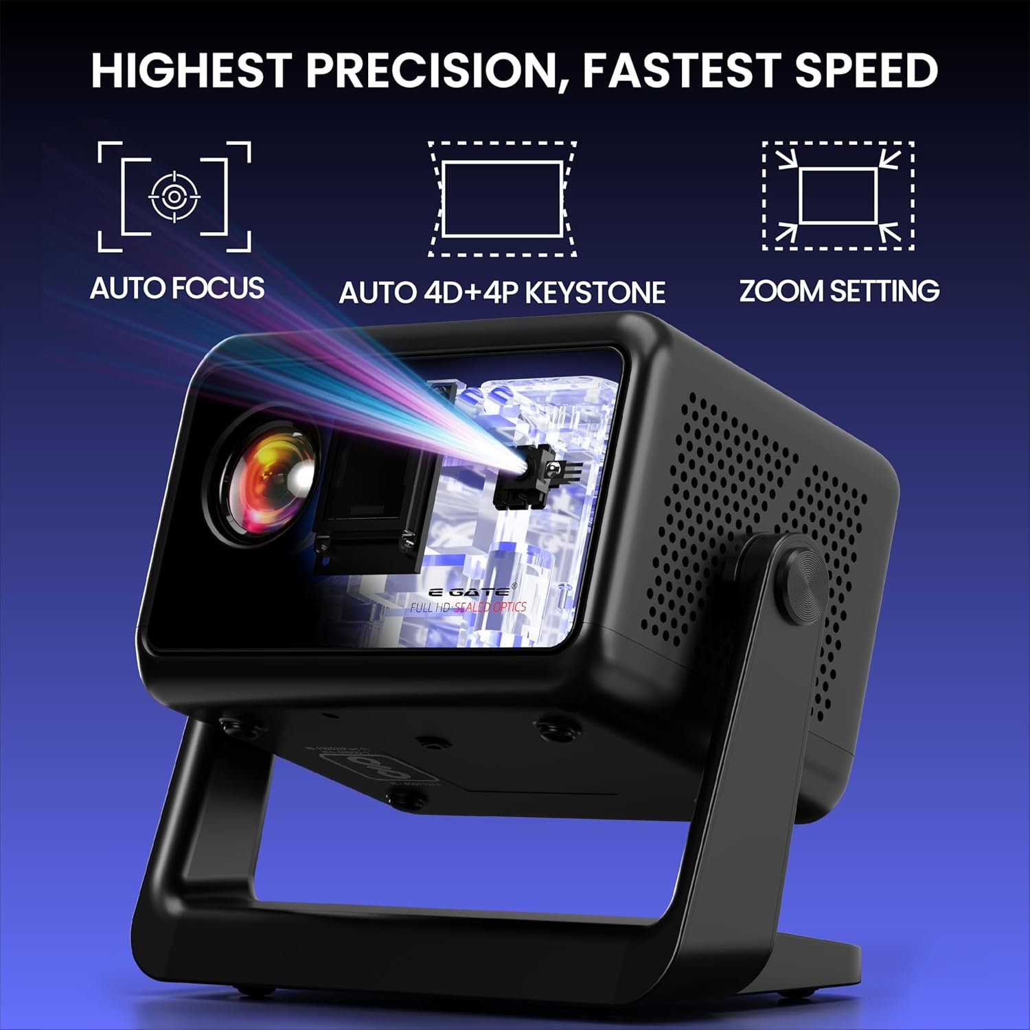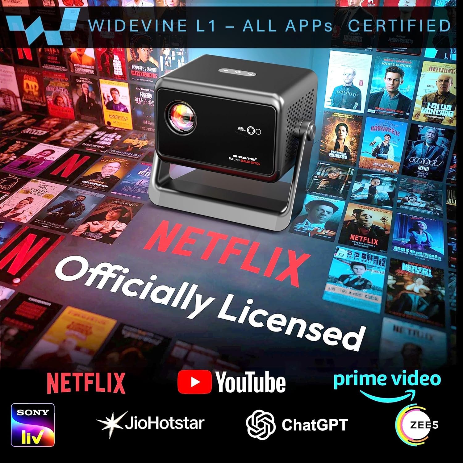 E Gate Duster 5X Pro | 100% Apps Certified Netflix, Prime | 100% Dust Proof | Fully Automatic Native 1080p Projector | Android 13 + Live TV | Voice-BT Remote, ScreenFree, 500 ISO, HDMI-ARC-WiFi6 EGATE