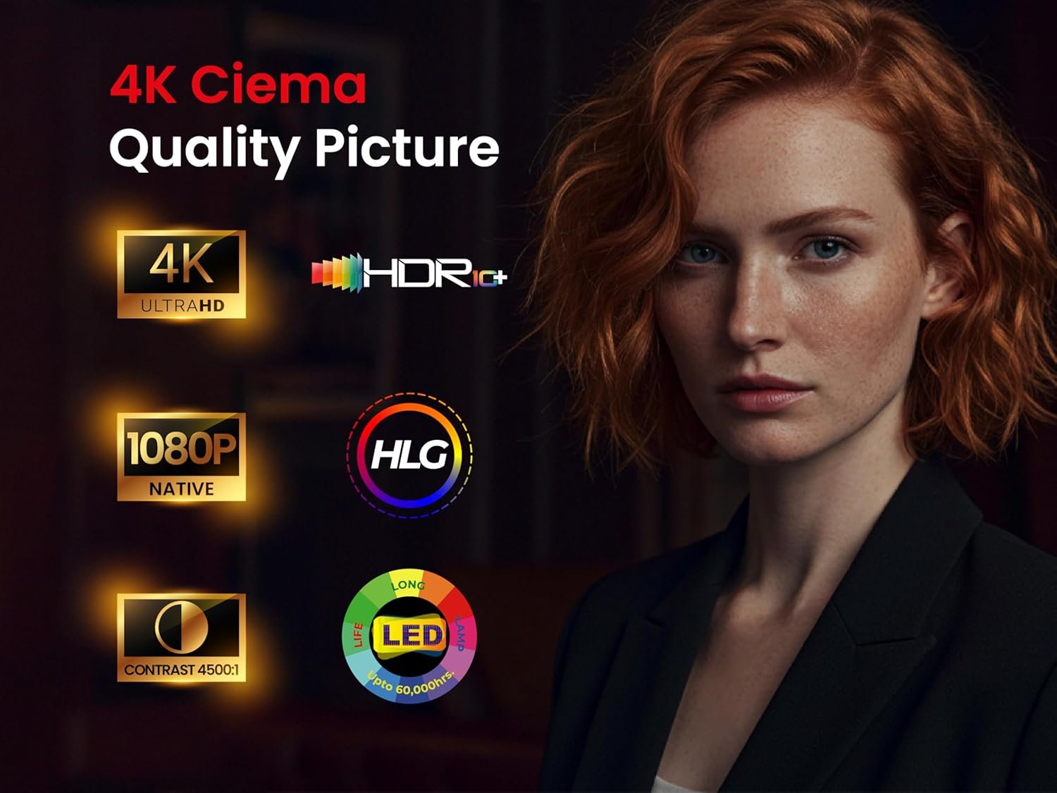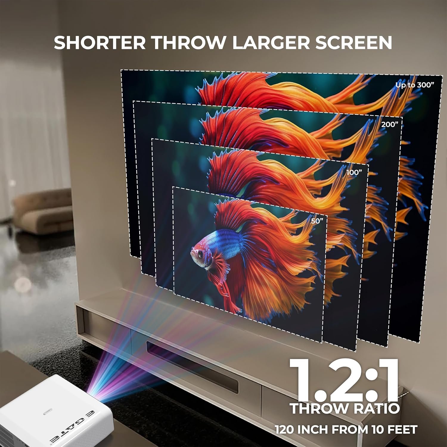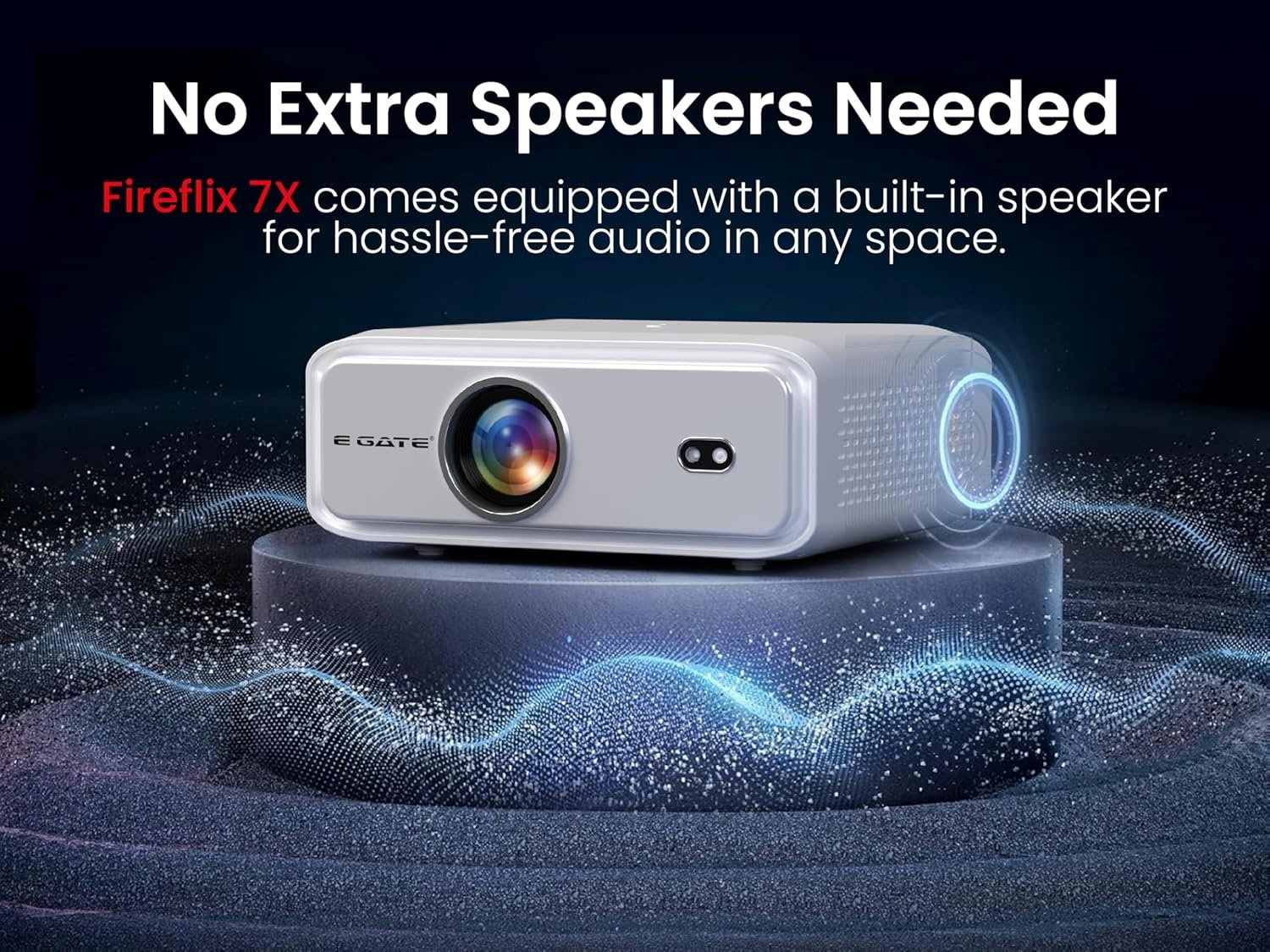 E GATE FireFlix 7X Android TV + FTS Fully Automatic Projector | 100% Dust Proof, 700 ISO Lumens | 100% All Apps Certified Netflix, Jio, Prime etc | Native 1080P & 4K HDR | 2GB-32GB, 2XHDMI-ARC, EGate