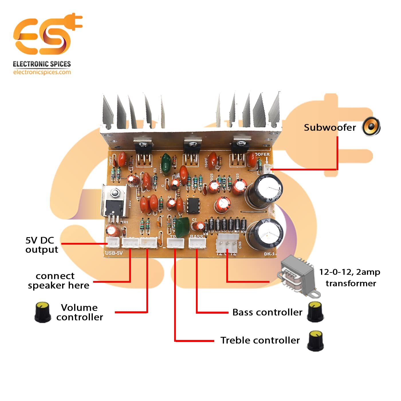 Electronic Spices Tda2030 3 TR 2.1 Home Theater 60 Watt Audio Amplifier Circuit Board