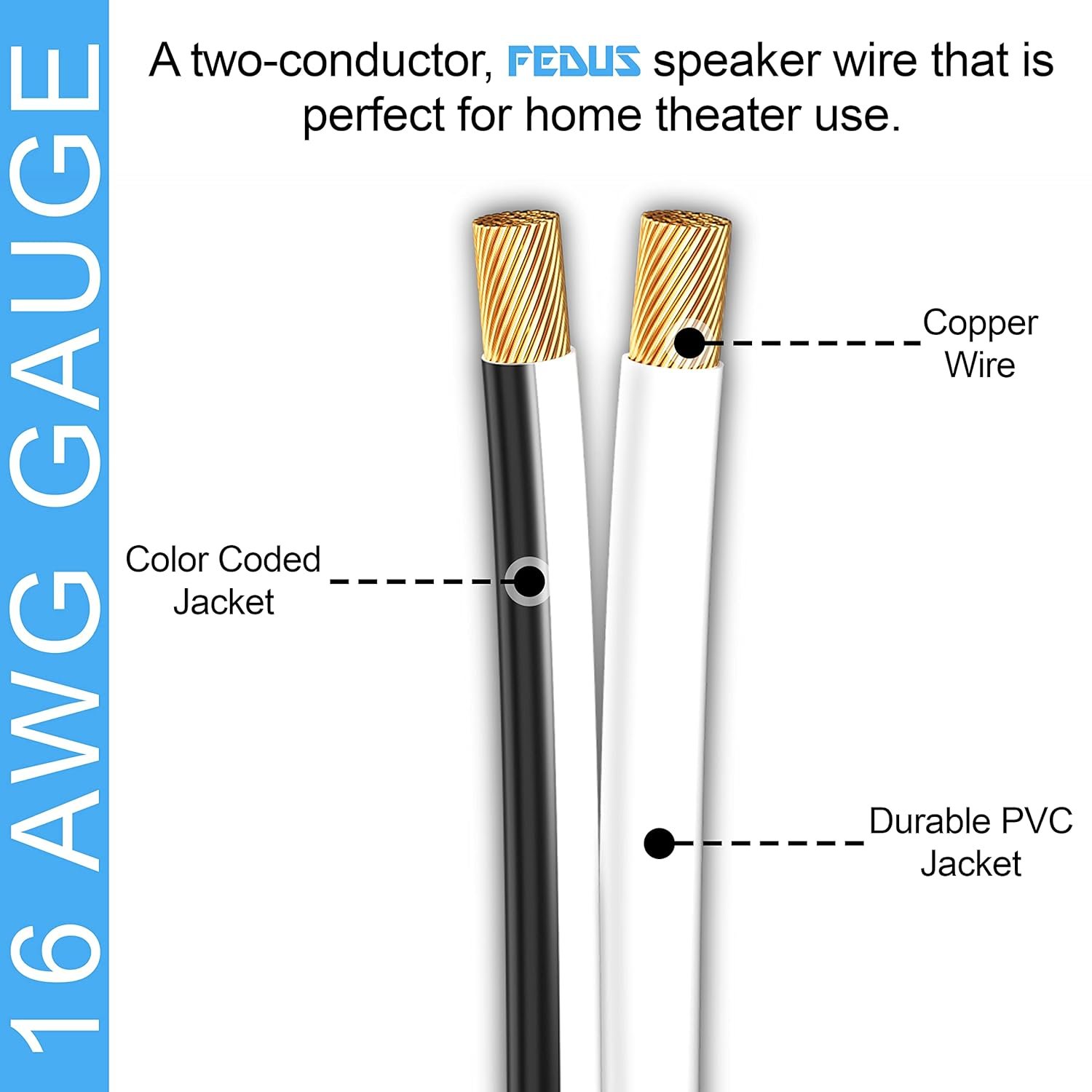 – VARIABLE LENGTHS AND GAUGES – FEDUS pro series Speaker wires are available in multiple lengths and colors, and in 14 or 16 AWG