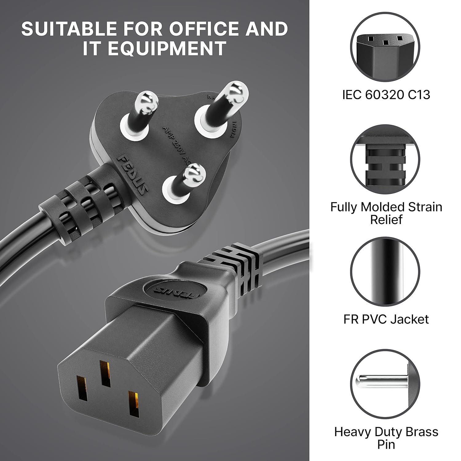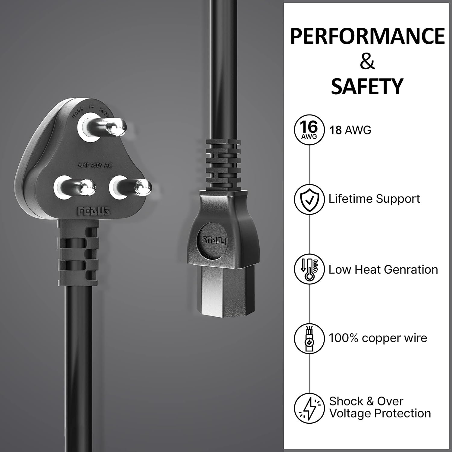 FEDUS 3M Computer Power Cable Cord for Desktops PC and Printers/Monitor SMPS IEC Mains Black
