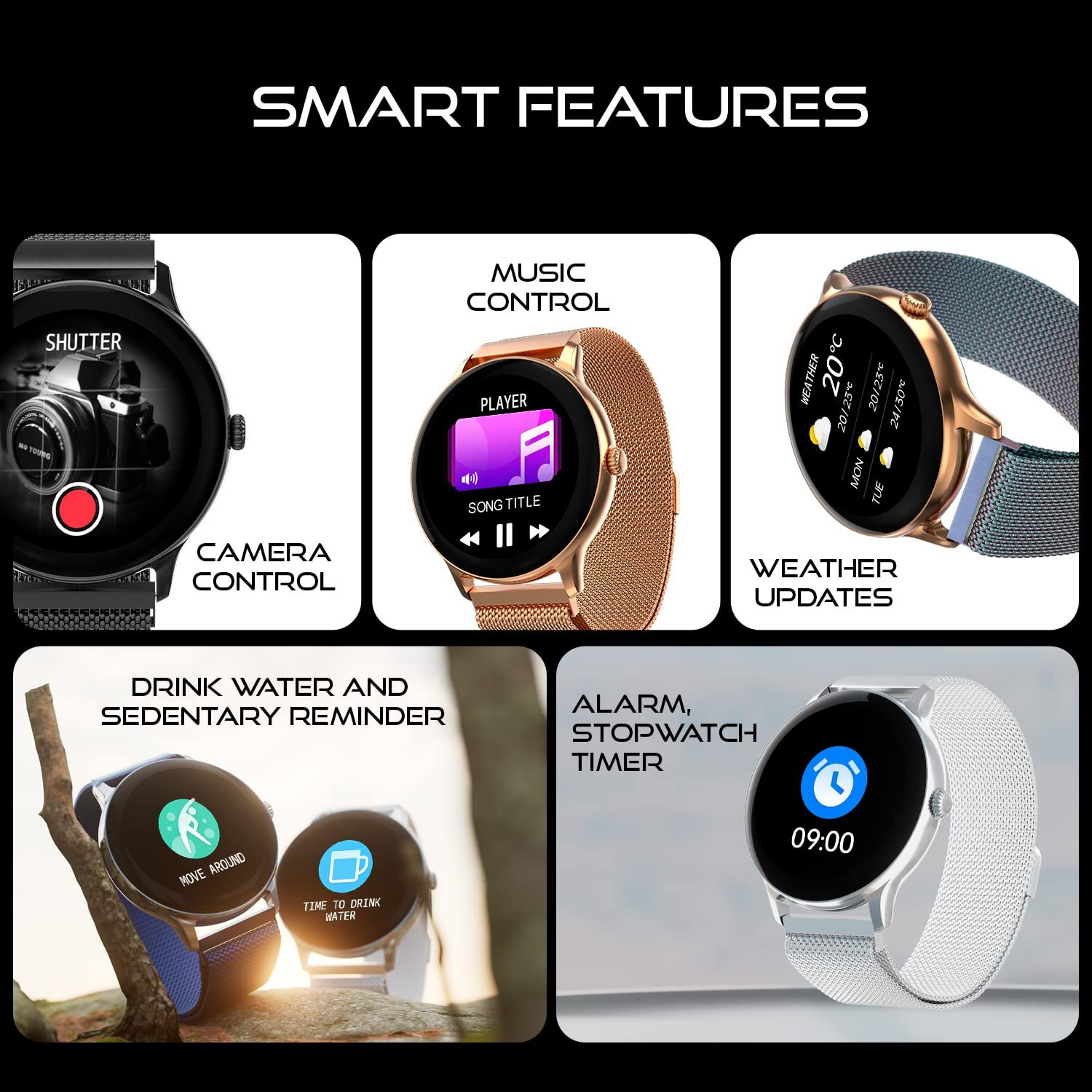 LARGE 1.39” HD DISPLAY WITH BRIGHT VISIBILITY – Enjoy a stunning 1.39-inch HD screen with 280 NITS peak brightness and vivid color clarity. Whether indoors or outdoors, with smart watch for woman experience sharp visuals and smooth touch interaction all day long.