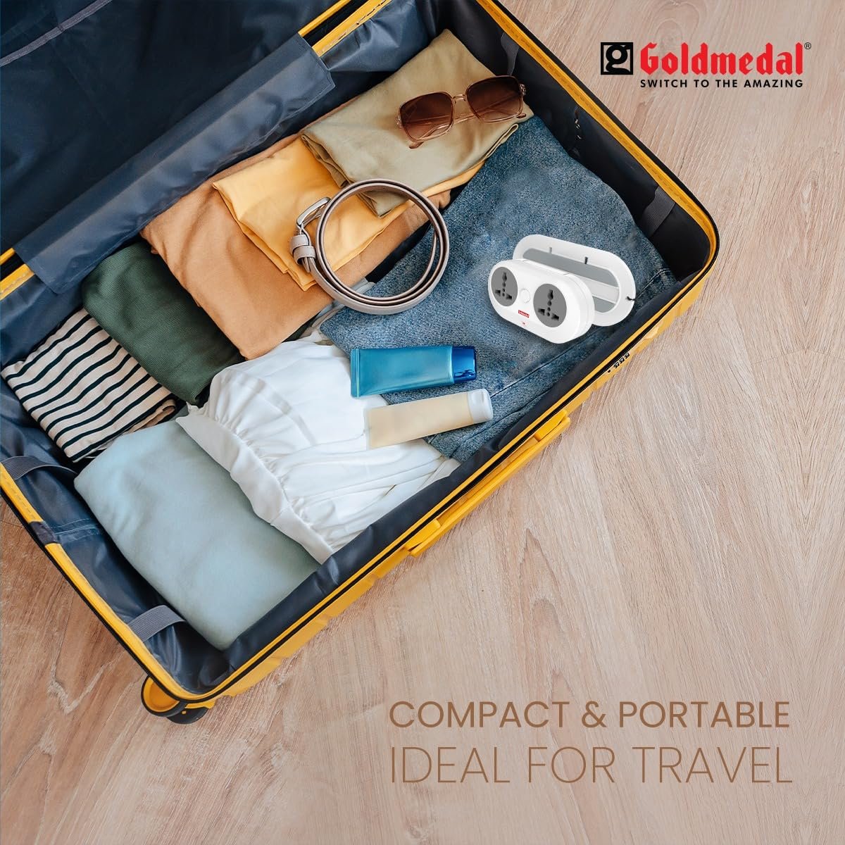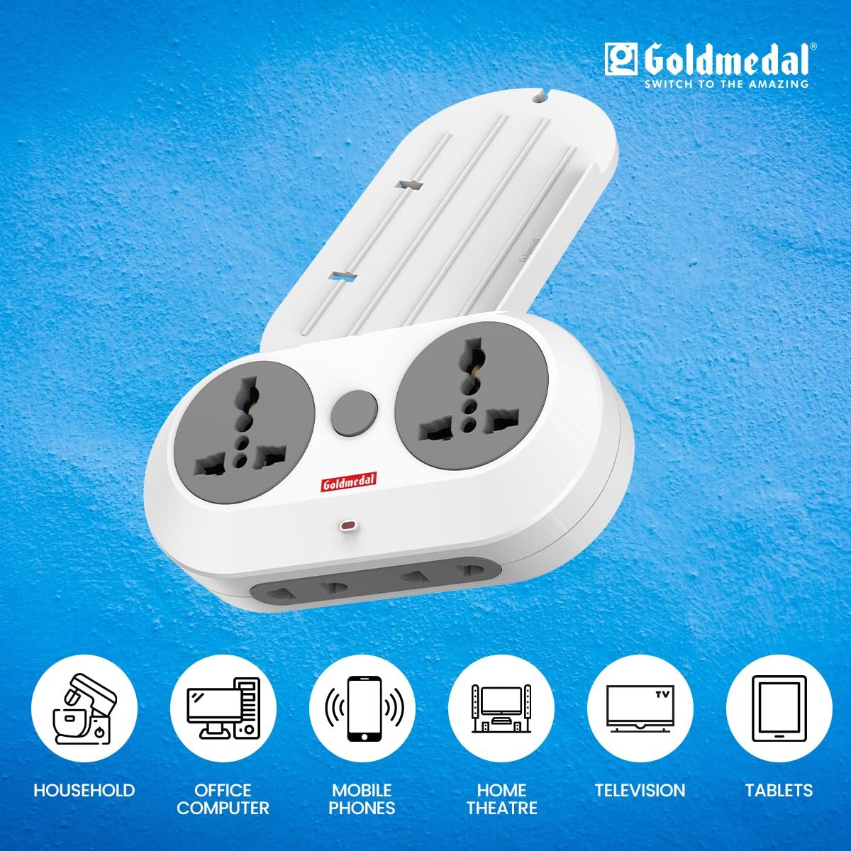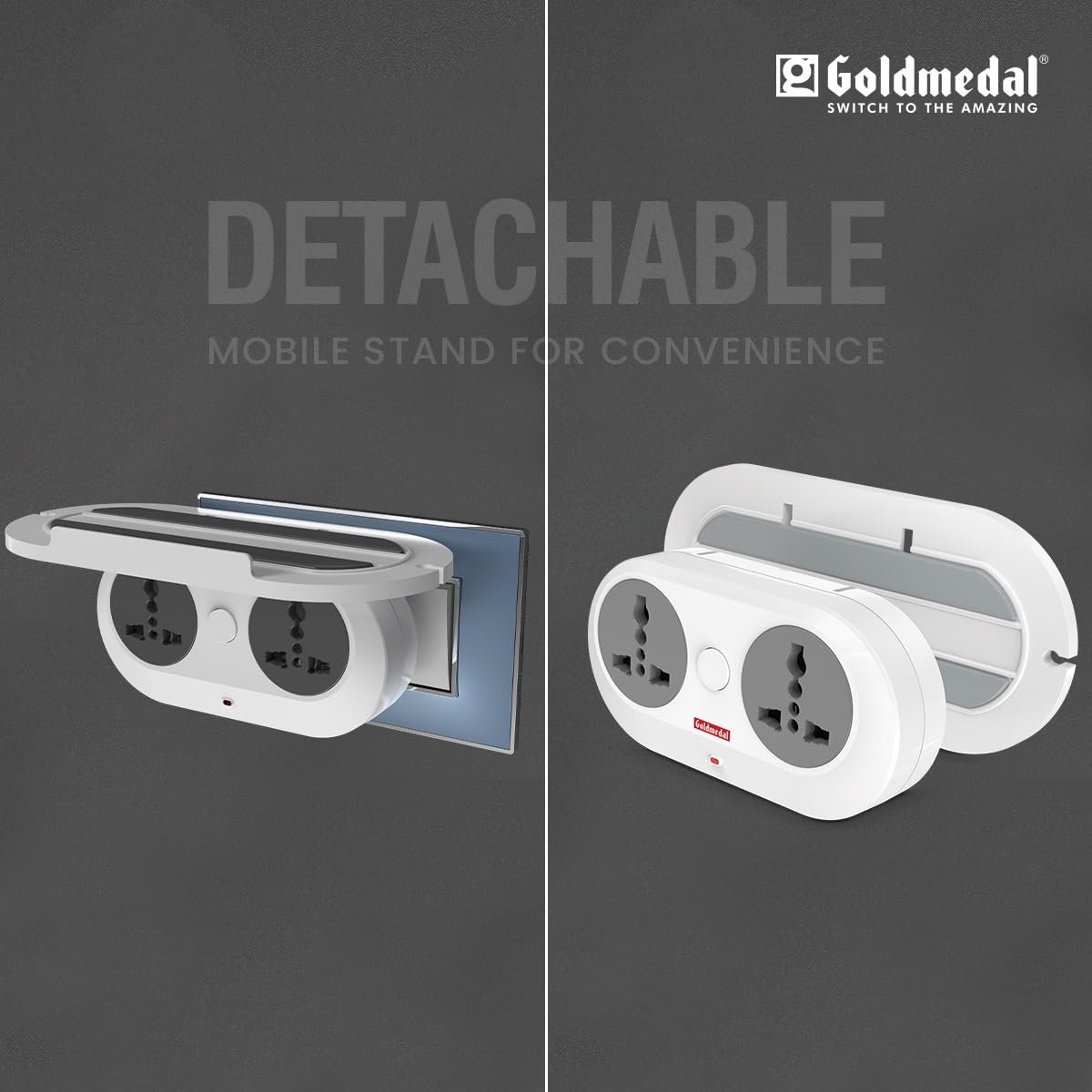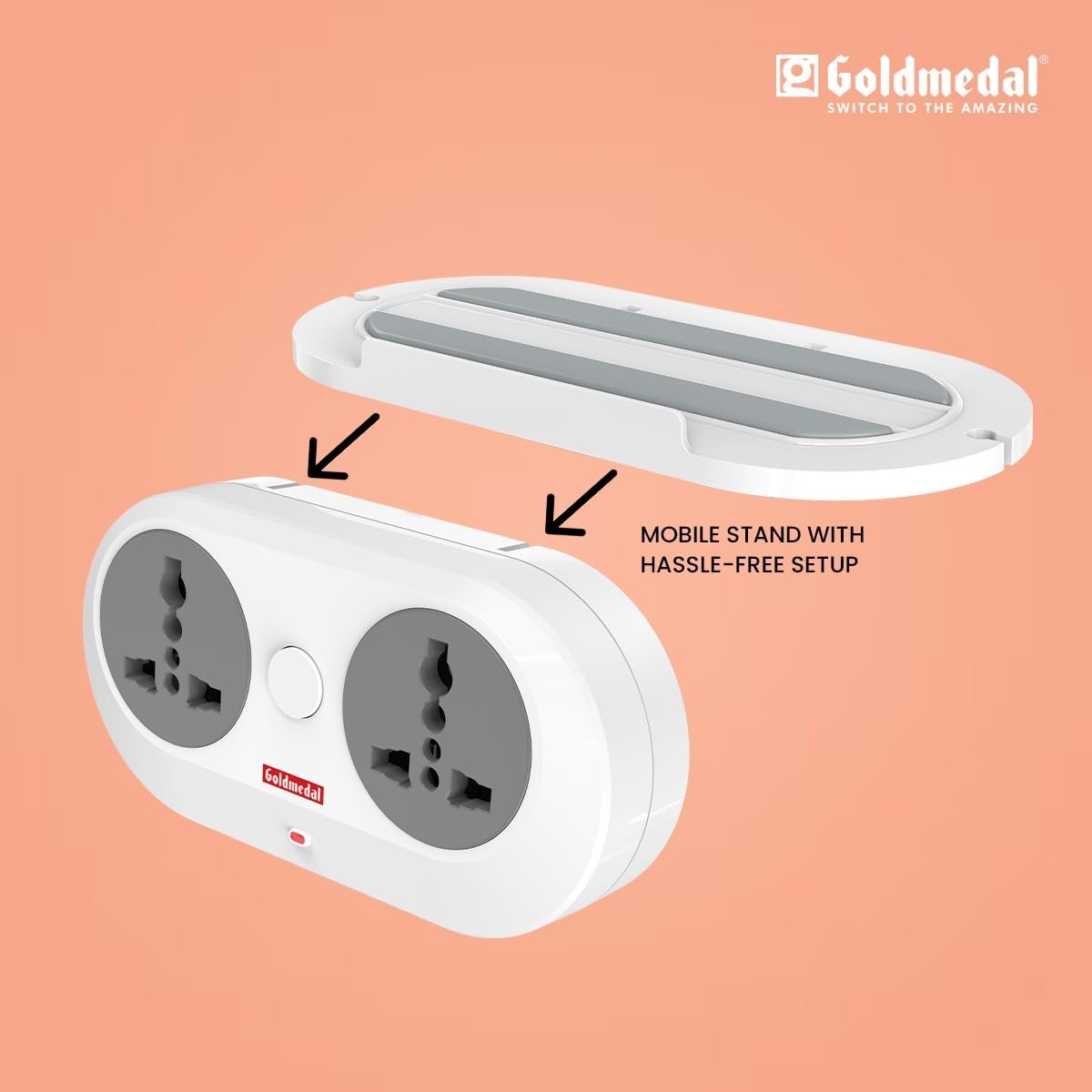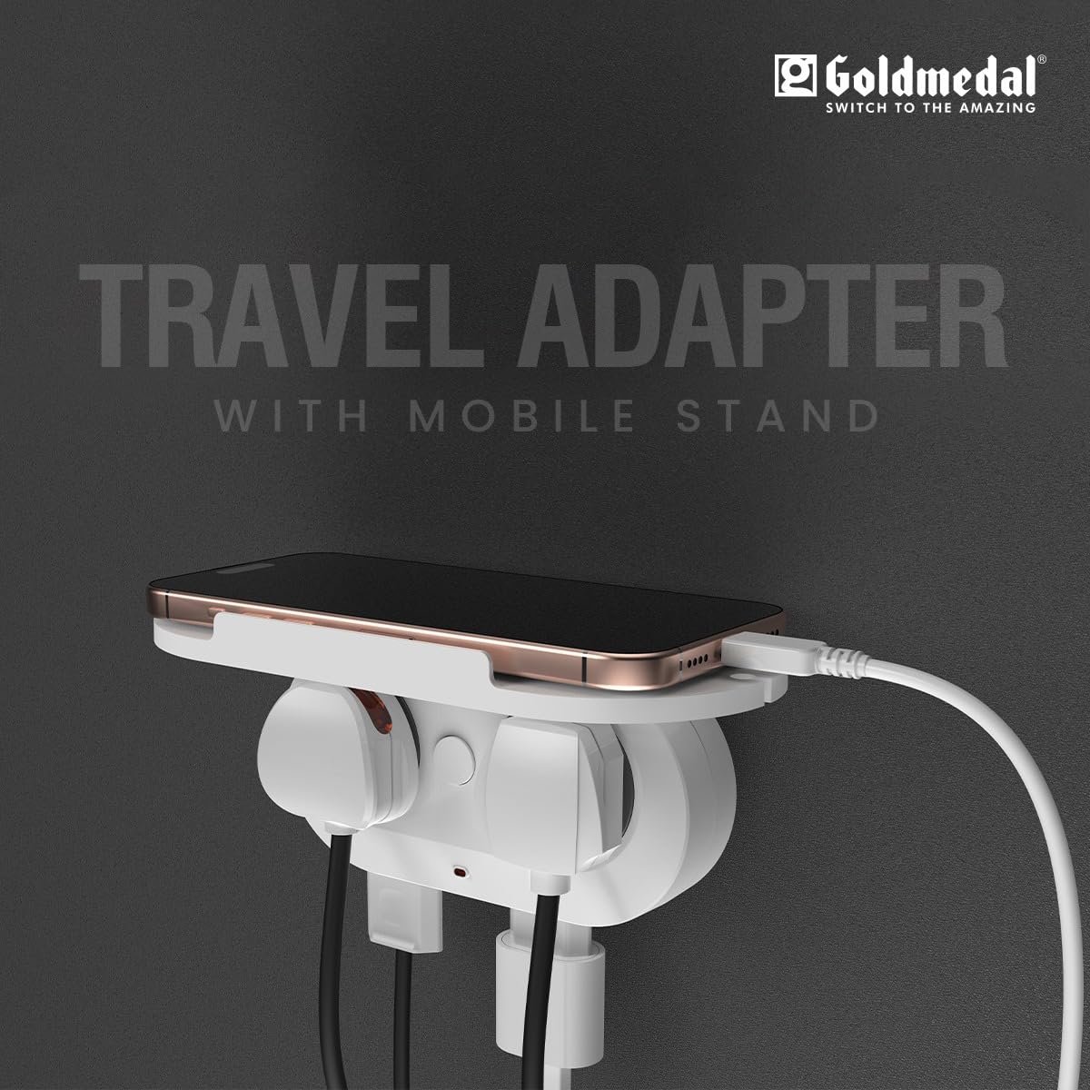 Goldmedal Wall-E-3 Pin Plug Travel Adaptor with Mobile Stand | Universal Sockets | Multiplug for Home & Office Appliances | Supports 2-Pin & 3-Pin Plugs (Pack of 1) – White