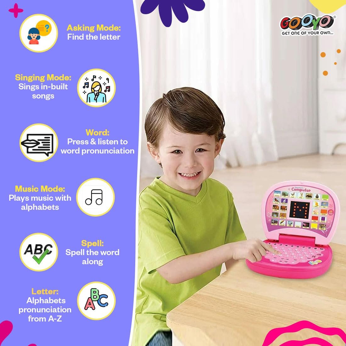Gooyo 2011A Battery Operated Educational Learning Laptop Toy with LED Display and Music Effect | Babies/Girls/Boys/Toddlers | Pink Color, Power Source: 3xAA Battery (Not Included)