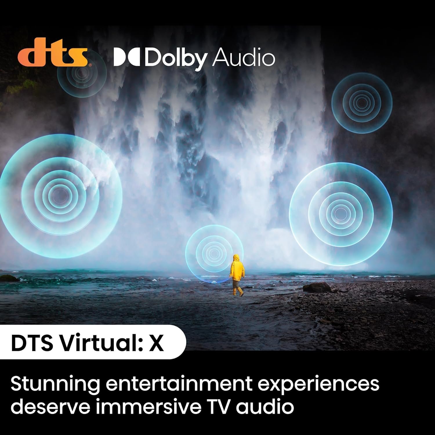 Sound: 24W Speakers Output | DTS Virtual X | Dolby Digital | Audio equalizer | Sound mode:Standard, Theatre, Sports, Music, Speech, Late Night | Dolby Digital