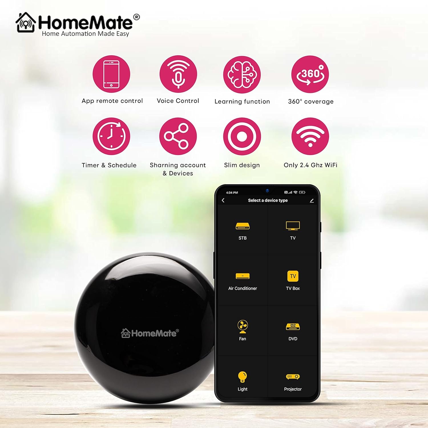 HomeMate® Wi-Fi Smart IR Control Hub (Pack of 1) | Smart Air Conditioner Remote | Compatible With Alexa, Google Home | All In One Infrared Remote For Smart Home | Black