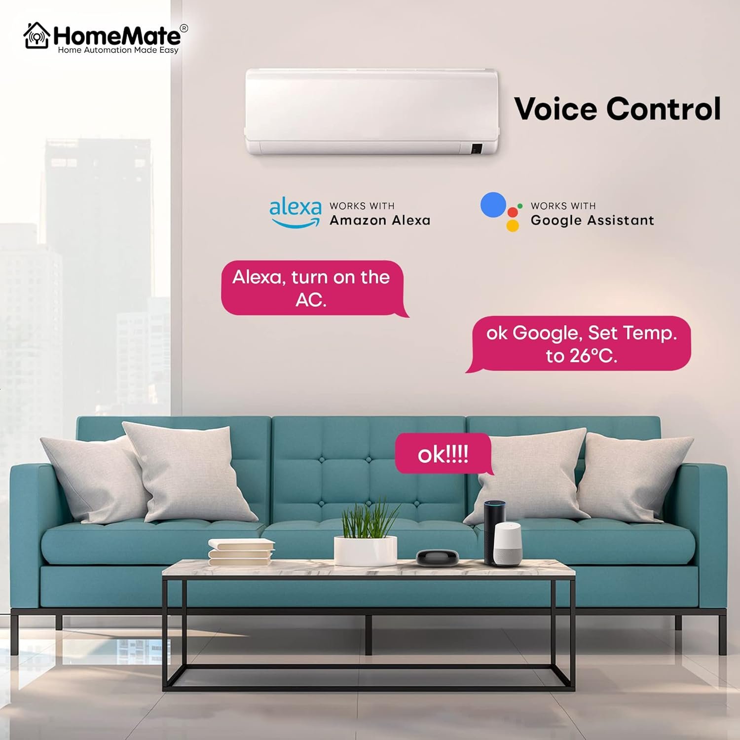 Work With Alexa, Google Home : IR Alexa, Google Home IR remote. Work With Amazon Alexa, Google Assistant and Siri easily control Air Conditioners, TVs, and Fans. Support smart home scene automation, enjoy your smart life. HomeMate Smart IR will open your Smart Life.
