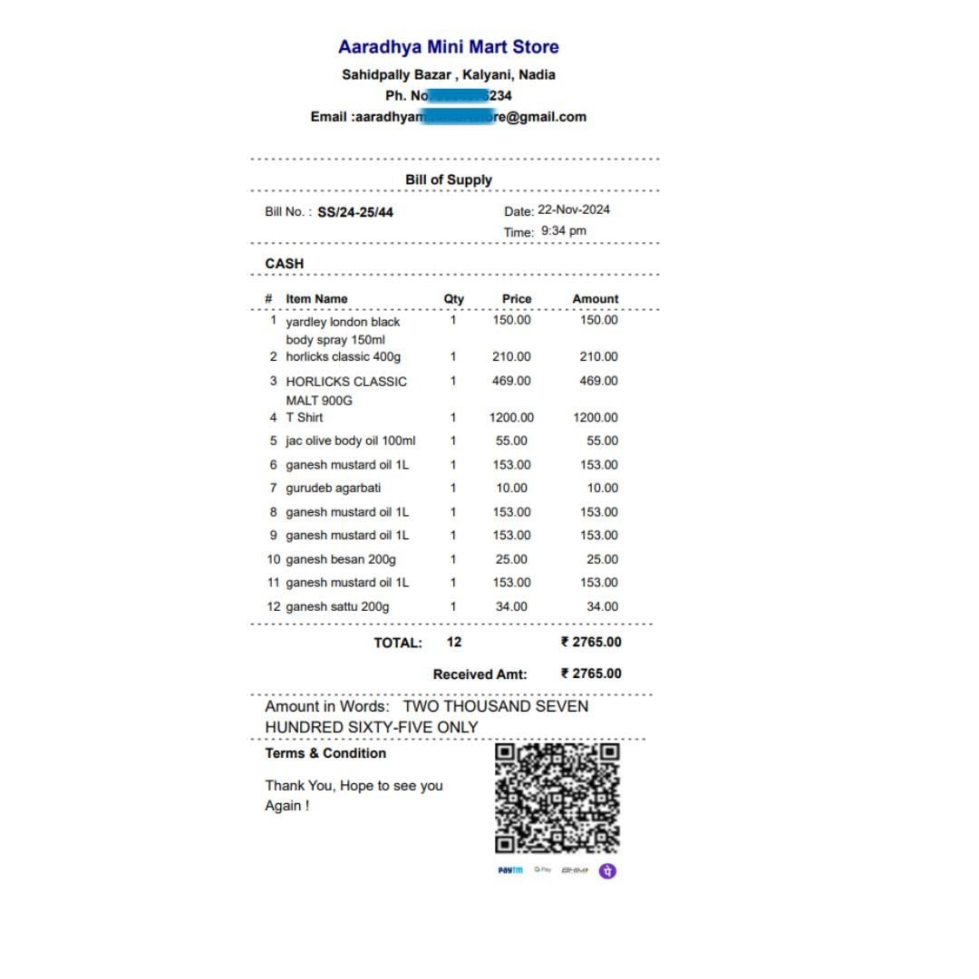 GST Inovice ( 58mm/88mm/A4/A5) | Simple Invoice (58mm/88MM/104mm/A4)