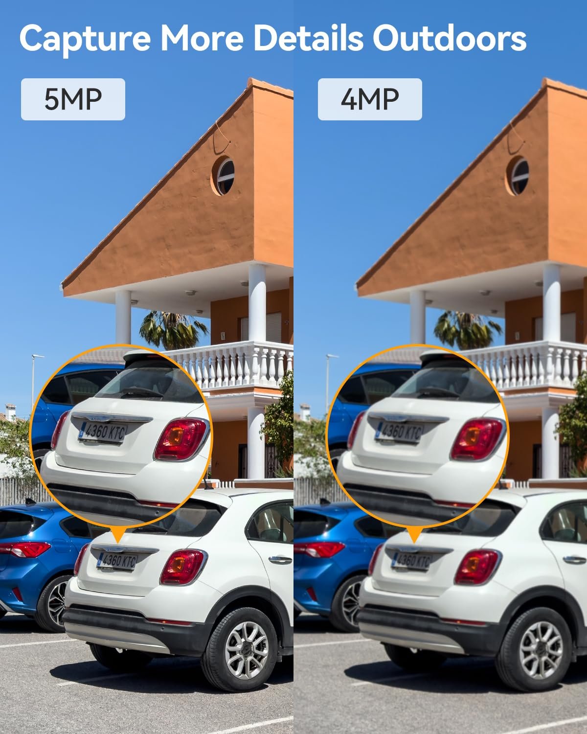 【5MP Live View & 30M(98ft) Full Color Night Vision】Imou WiFi Camera DK7 5MP can see more clear details. A wide field of view allows you to clearly monitor large yard. Equipped with 1/2.8 CMOS high sensitivity lens, the live streaming remains vivid even in low light conditions. Built-in 2 LED spotlights provides full colour live view up to 30m(98ft) in complete darkness. 8x digital zoom for convenient monitoring of driveway outside your house day and night.