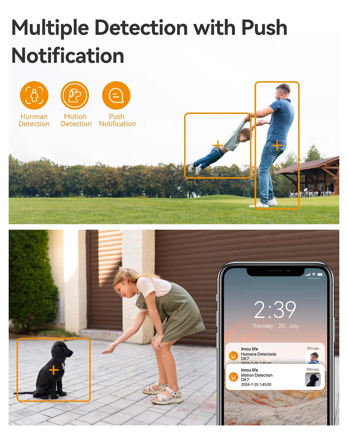 【Smart Detection & Active Deterrence】Equipped with humanoid detection algorithm, the camera effectively filters false alarms caused by rain/light/insects, generates more accurate real-time alarm videos and sends notifications on Imou Life App for you to check the important alarm playback at any time. Built-in 110dB security siren and spotlights will be immediately triggered once it detects an abnormality, scaring away unwanted guests.