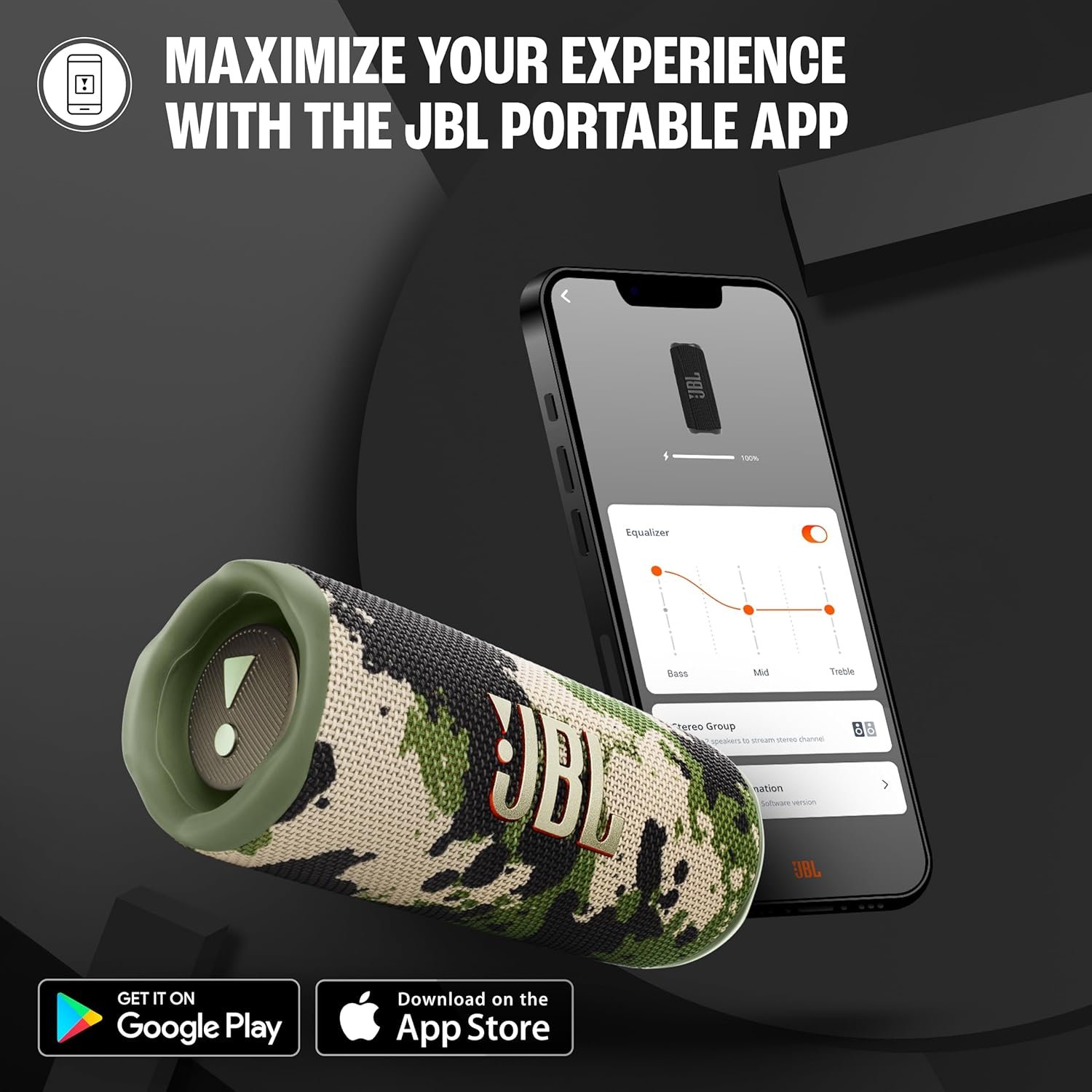 JBL PORTABLE APP: Amplify your audio or tweak your bass using JBL portable app. Get updates & support straight from your phone.