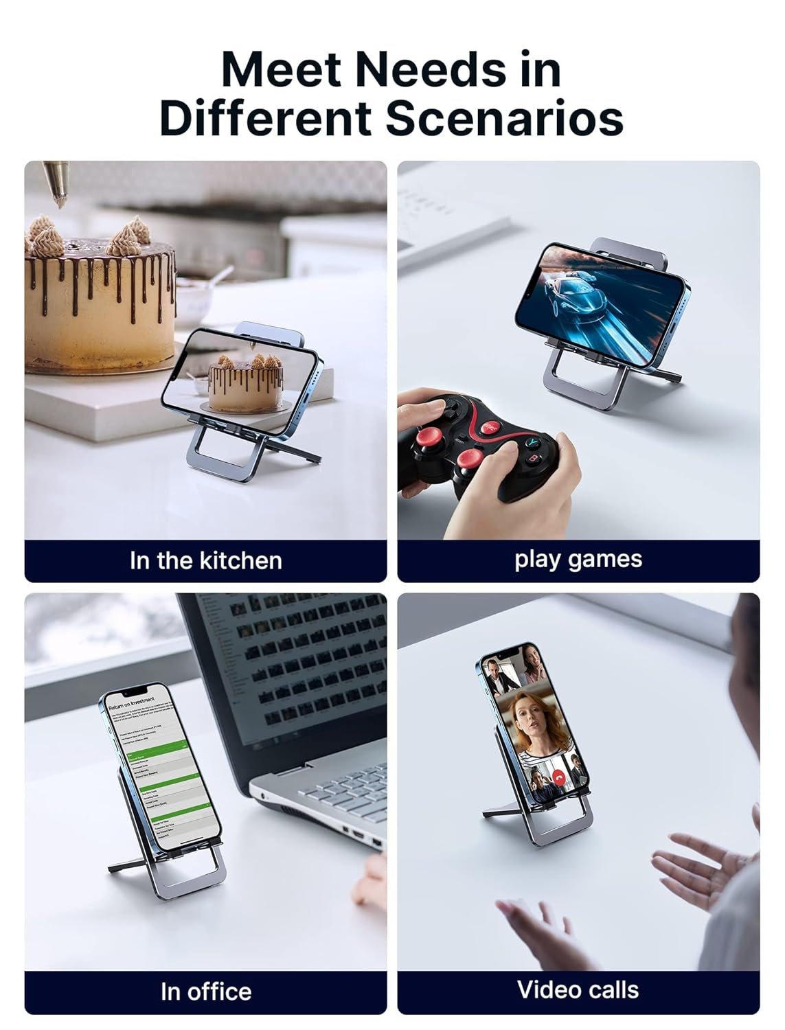 👍【Foldable and Convenient】: This portable cell phone holder for desk is foldable and can be completely folded into a pocket-size, it is easy to carry anywhere. It can easily be put in your pocket or bag during travel or business trip. You can free your hands and enjoy a Youtube video or Facetime call anywhere at any time.