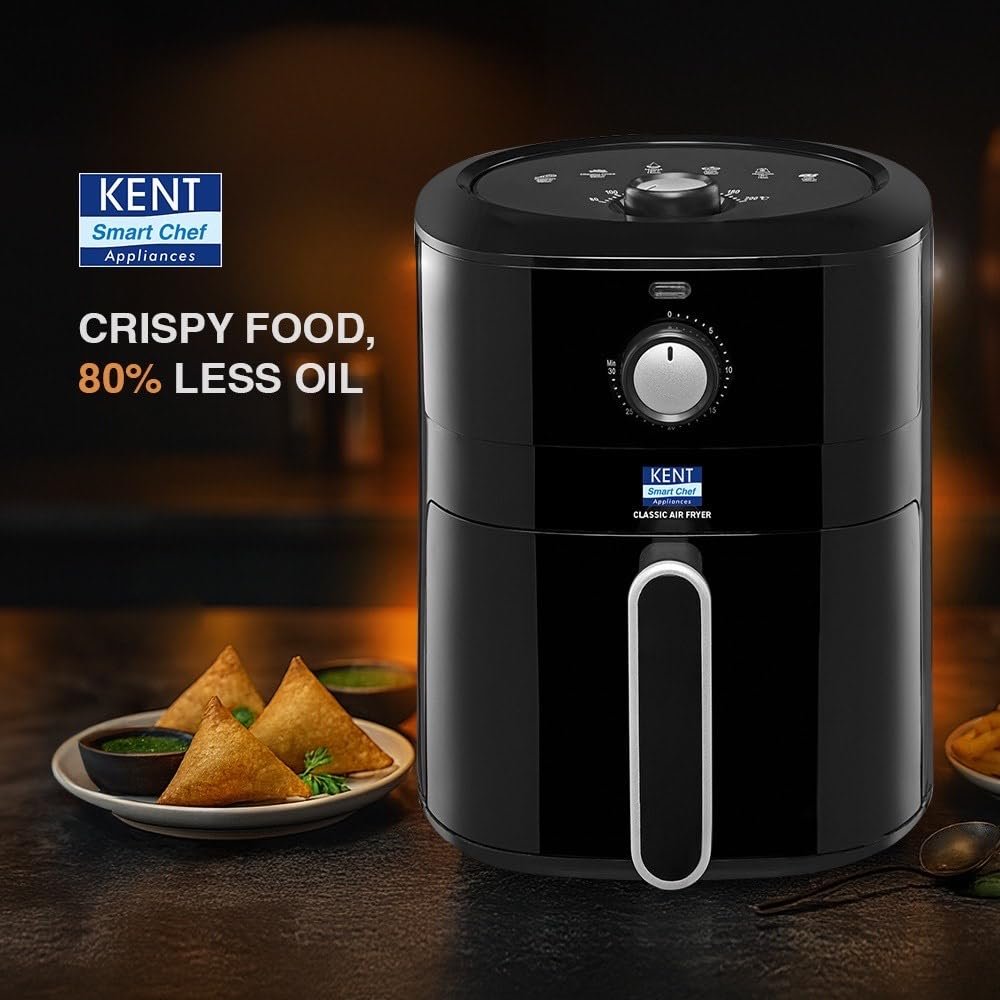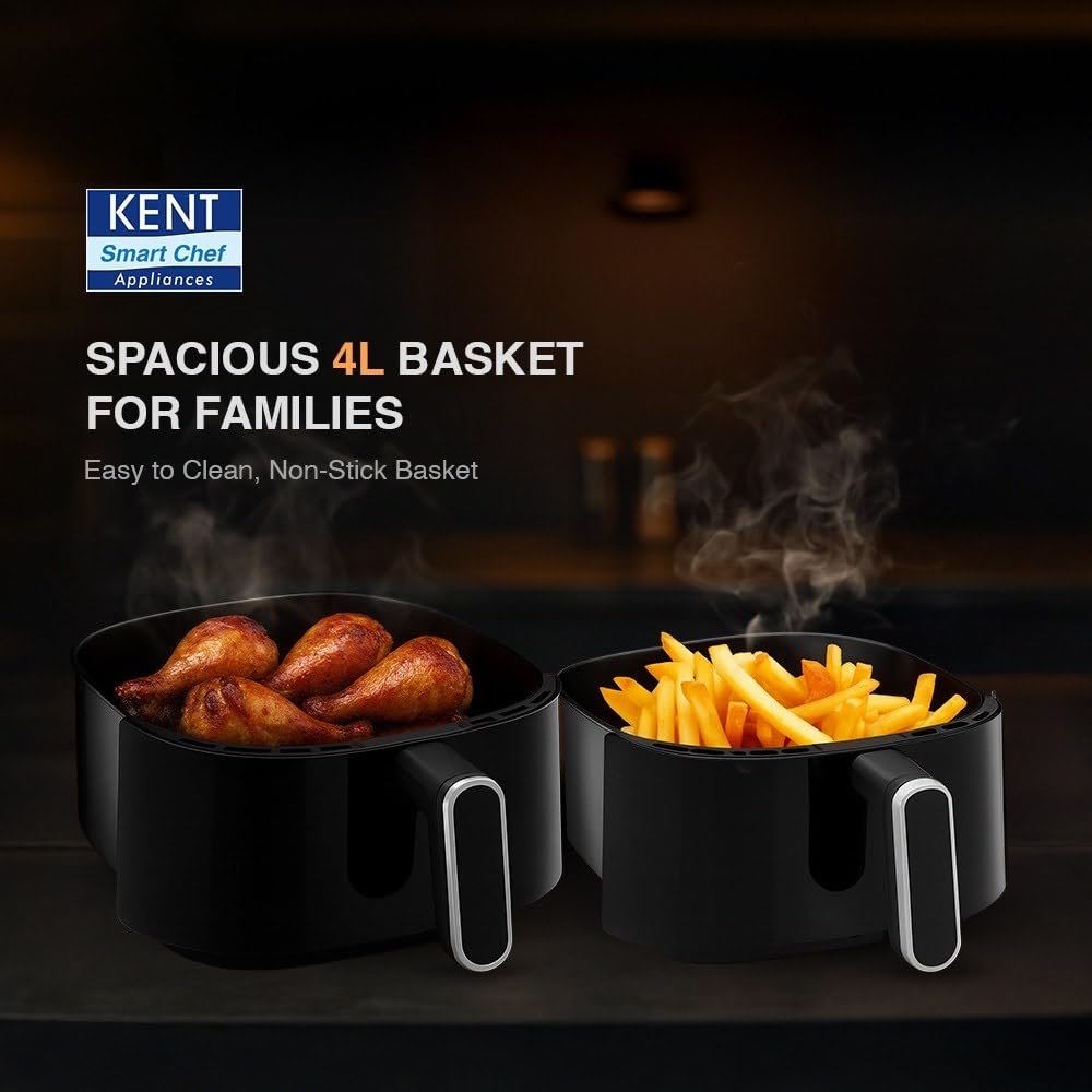 KENT Classic Hot Air Fryer 4L 1300 W | 80% Less Oil | Instant Electric Air Fryer | Auto Cut Off | Fry, Grill, Roast, Steam, and Bake | 1 Year Warranty | Black
