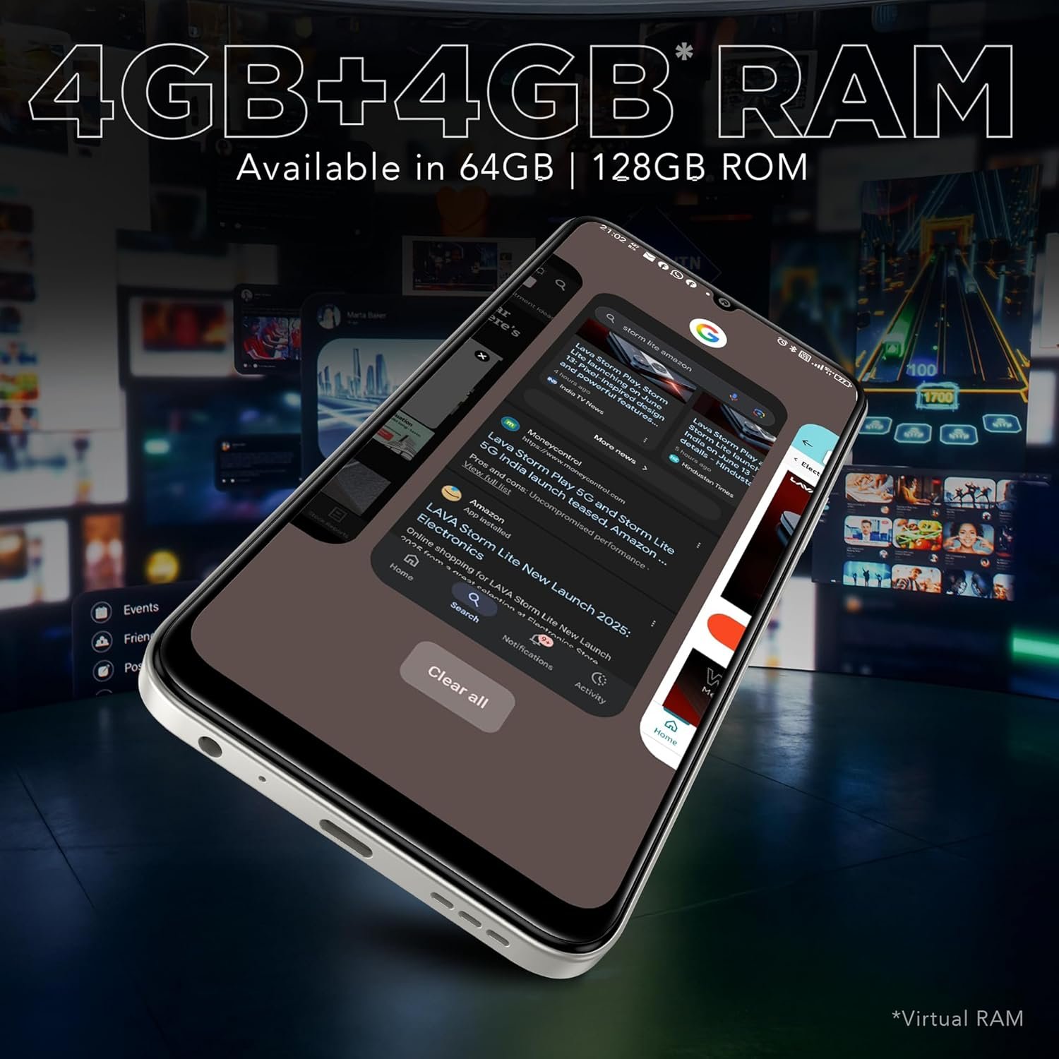 Lava Storm Lite 5G (Astral Blue, 4+4*GB RAM, 64GB Storage) | India’s First MTK Dimensity 6400 Processor | 50MP AI Camera | IP64 Rated | 120 Hz Display | 5000mAh Battery | Supports All 5G Bands