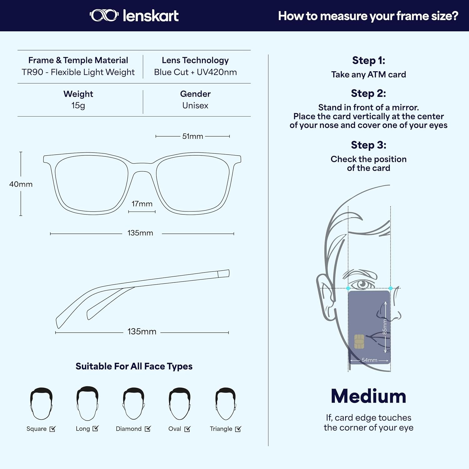 LENSKART BLU | Zero Power Blue Cut Computer Glasses | Gaming Glasses | Anti Glare, Lightweight & Blocks Harmful Rays | UV Protection Specs | Men & Women | Medium | LB E13526