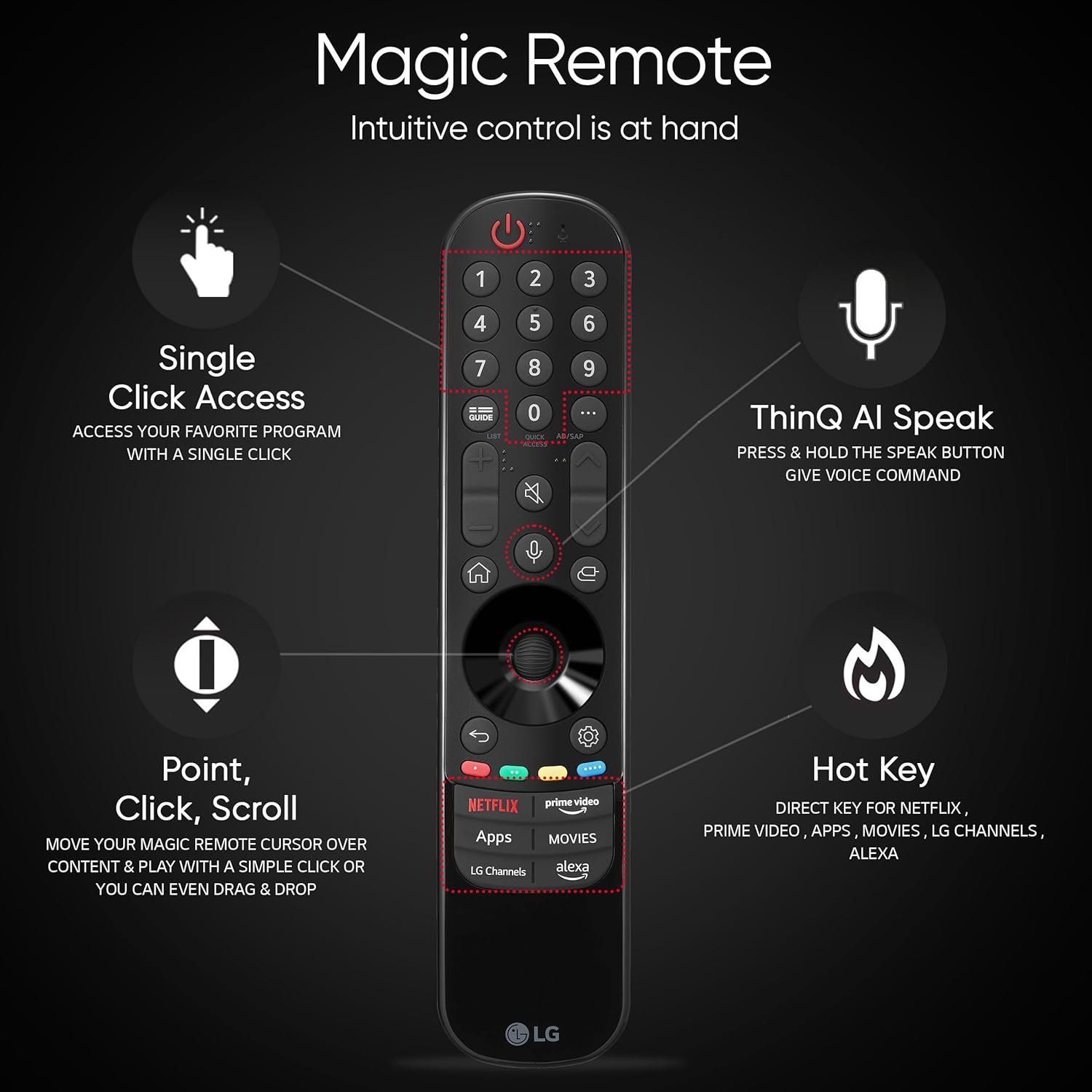Smart TV Features: α8 AI Processor | Web OS Operating System | Wi-Fi | Magic Remote | Full Web Browser | Built In Chromecast | Game Optimizer | AI Functions | Dynamic Tone Mapping Pro | HDR 10 | 2 GB RAM | 16 GB ROM | Supported Apps: Prime Video, Netflix, Jio Hotstar, Sony Liv, Zee5, Apple TV and more | Energy Rating: 3 Star | Annual Energy Consumption: 184.00 kWh/Year