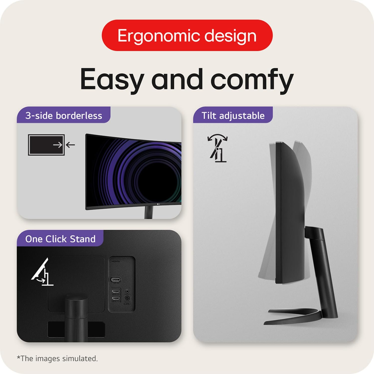 LG 34WR50QK, 34 inch (86.36 cm), WQHD 3440 x 1440 Curved Ultra Wide, Black, sRGB 99%, HDR 10, Dual Controller, PBP, Flicker Safe, Smart Energy Saving, HDMI, DP, Head Phone Out, Tilt Monitor