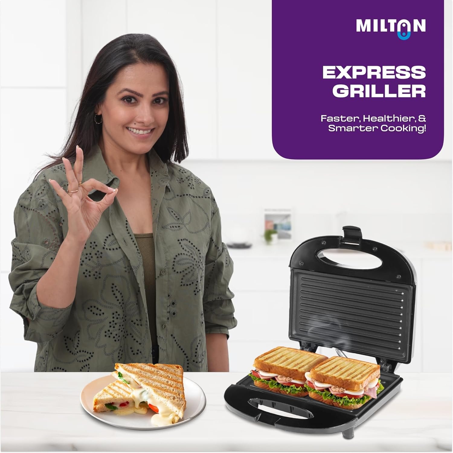 MILTON Express 800 Watt Grill Sandwich Maker | Electric Toaster Griller Sandwich Maker | Non Stick Coating Grill Plates | Power Indicators | 1 Year Warranty | Black