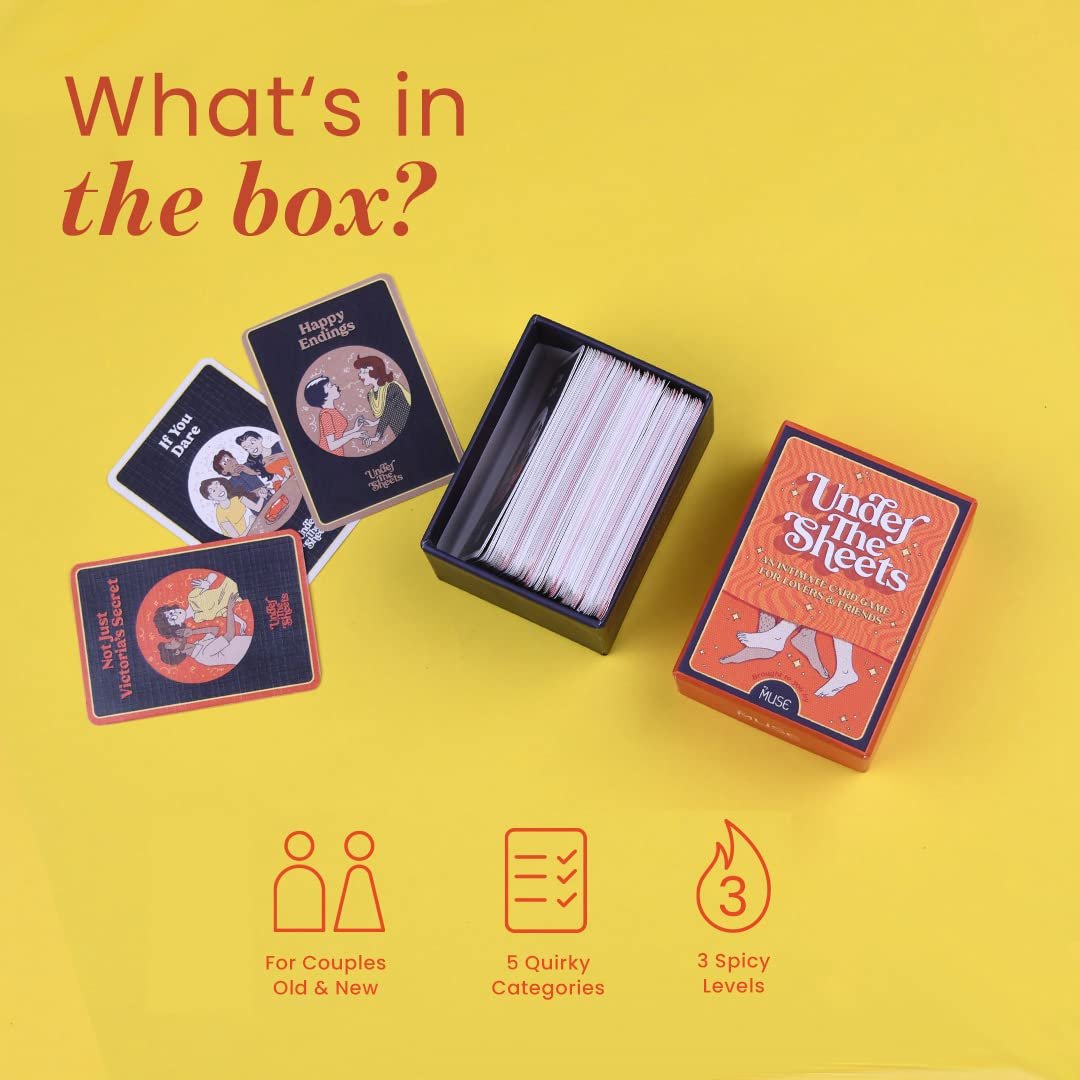 MYMUSE Under The Sheets Naughty Card Game for Couples & Lovers, Perfect for Date Nights, Romantic and Playful Gifts – 150 Cards with 5 Exciting Categories, All Ages