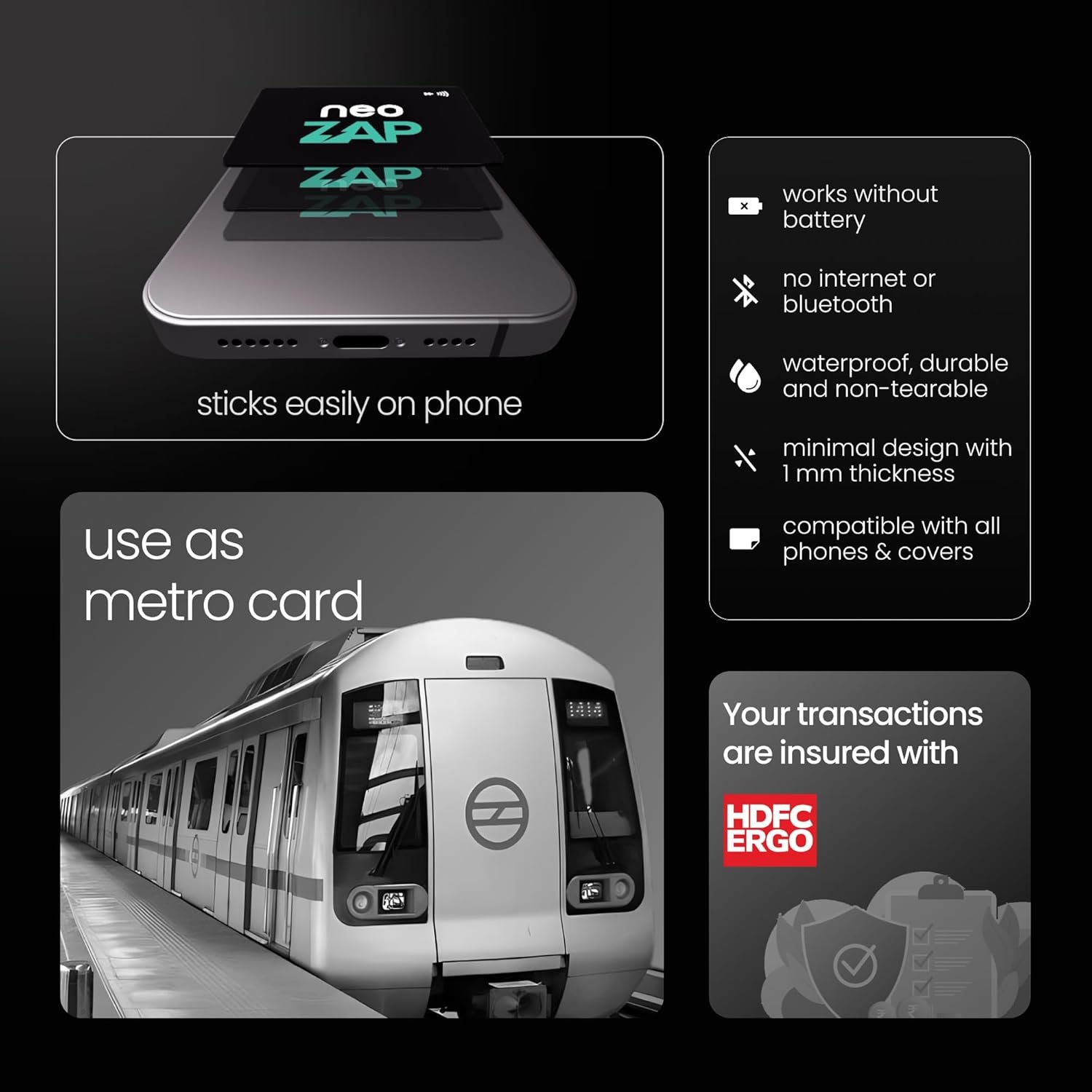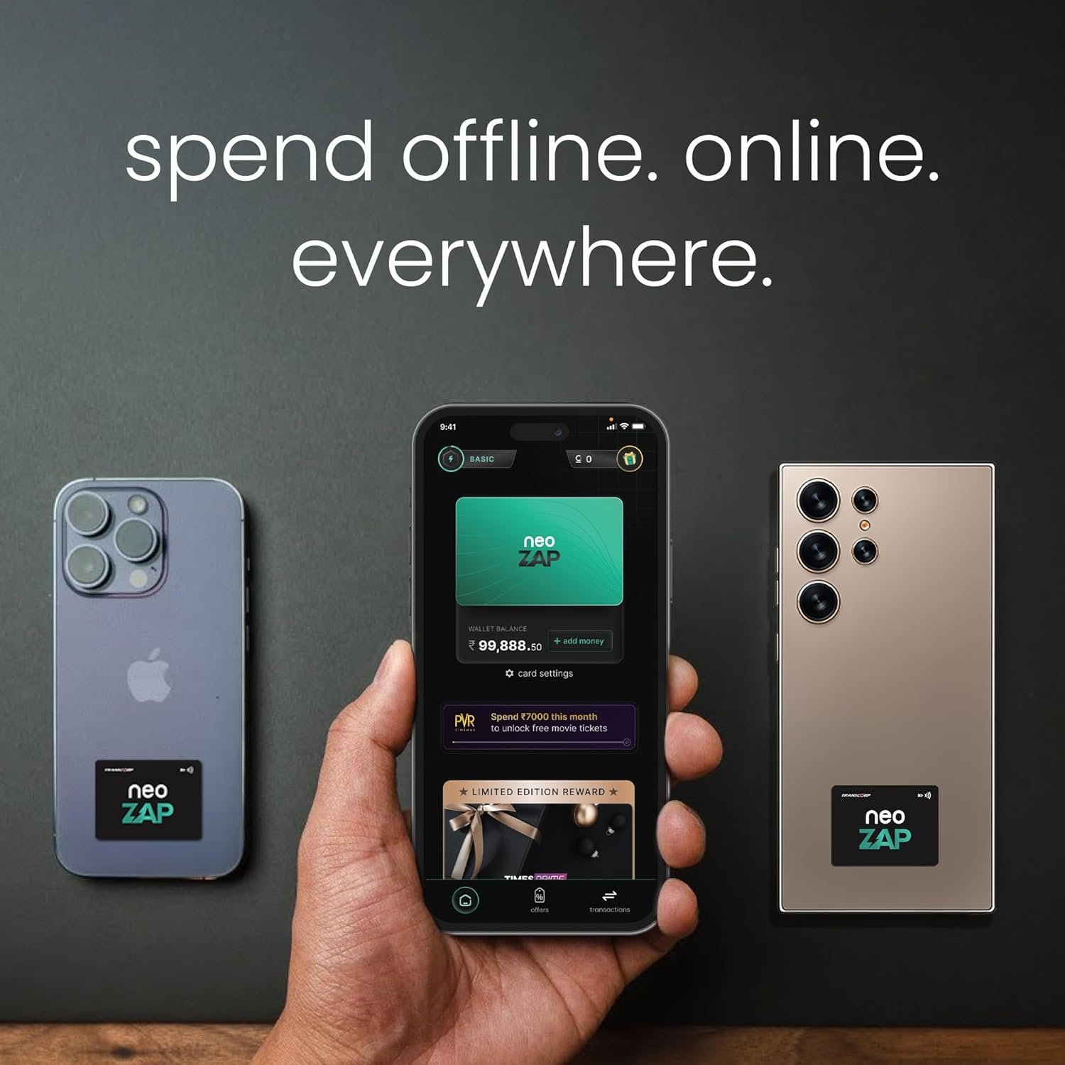 Tap & Pay with your phone – no cards, apps or internet needed. This is NeoZAP India’s Premier Payment Tag that lets you pay offline & online; and even works on public transport. Get exciting rewards from 400+ top brands including Starbucks, Uber, YouTube, Google, Tinder, McDonalds and more. Watch free movies every month on PVR Cinemas! Packed with amazing features like UPI AutoPay, fraud insurance and card controls in the NeoZAP companion app, you can enjoy fast, safe & rewarding payments with each tap!