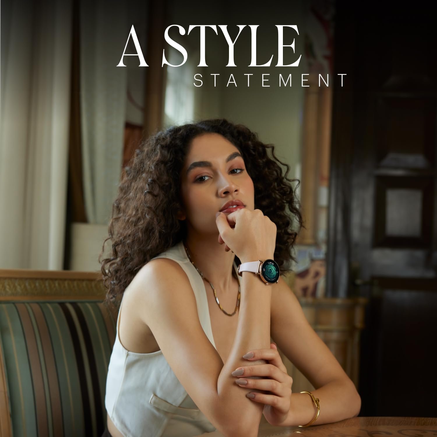 Noise Diva 2 Fashion Smart Watch for Women – Sleekest Dial, 36mm AMOLED Display, Snug Fit, Improved Female Cycle Tracker, BT Calling, Sleep Tracking, AI Voice Assistant, Password Protection-Rose Link
