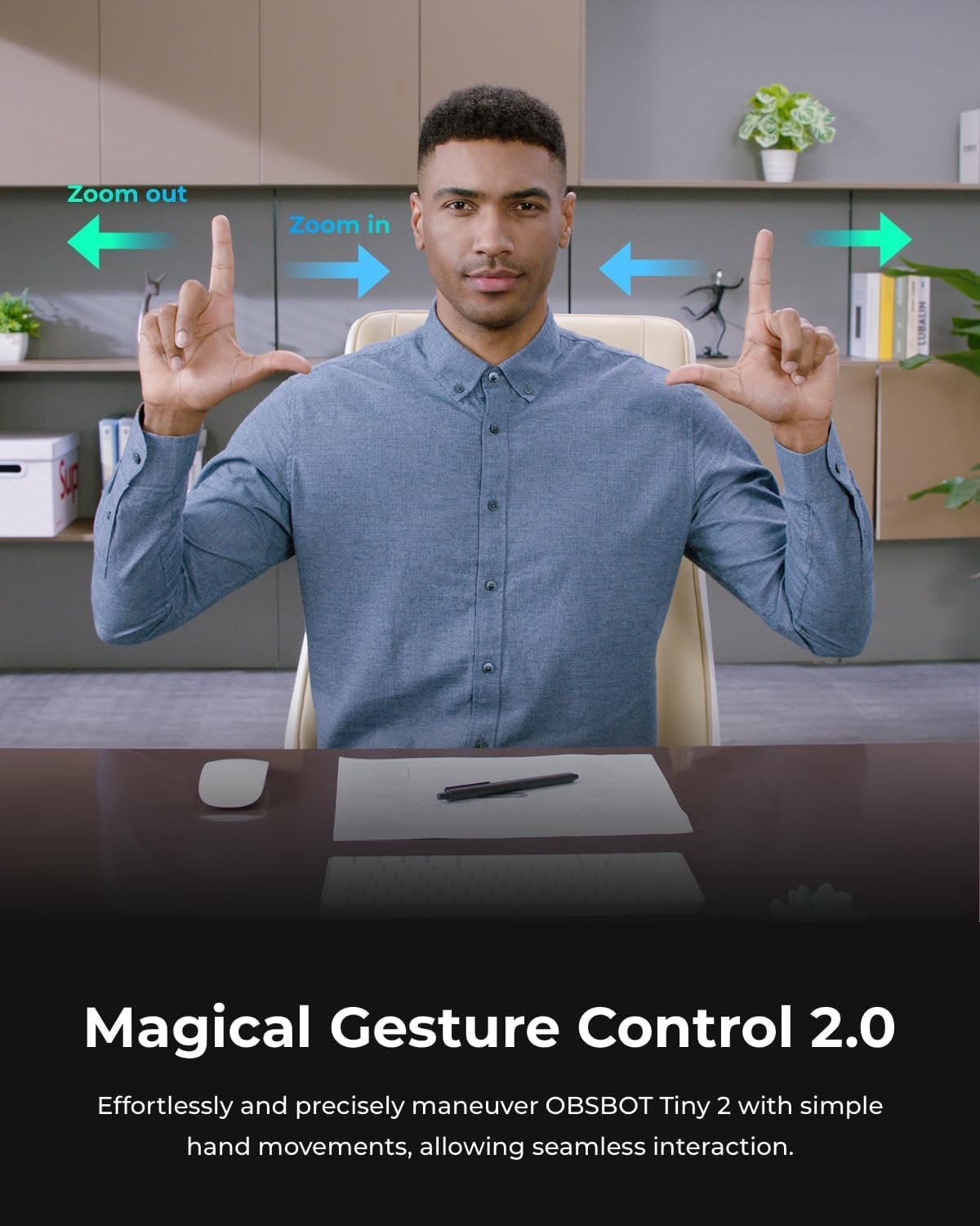 【Breakthrough Voice & Gesture Control】Our Webcam with Microphone introduces a groundbreaking voice control feature, becoming the first webcam to support voice commands. If you are far away from the conference camera, you can control your Webcam for Streaming through specific commands, such as 🗣️”Hi, TINY”, “Track Me”, etc simple command. Besides, Tiny 2’s gesture control has been upgraded to version 2.0, making it even more responsive.