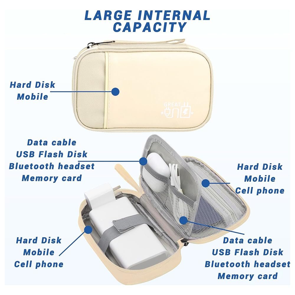 oddpod™ Pu Leather Electronic Gadgets Organizer Bag for Travel/Portable Waterproof All-in-One Storage Case for Cable, Cord, Charger, Phone, Hard Drive and More – Small (Begie)