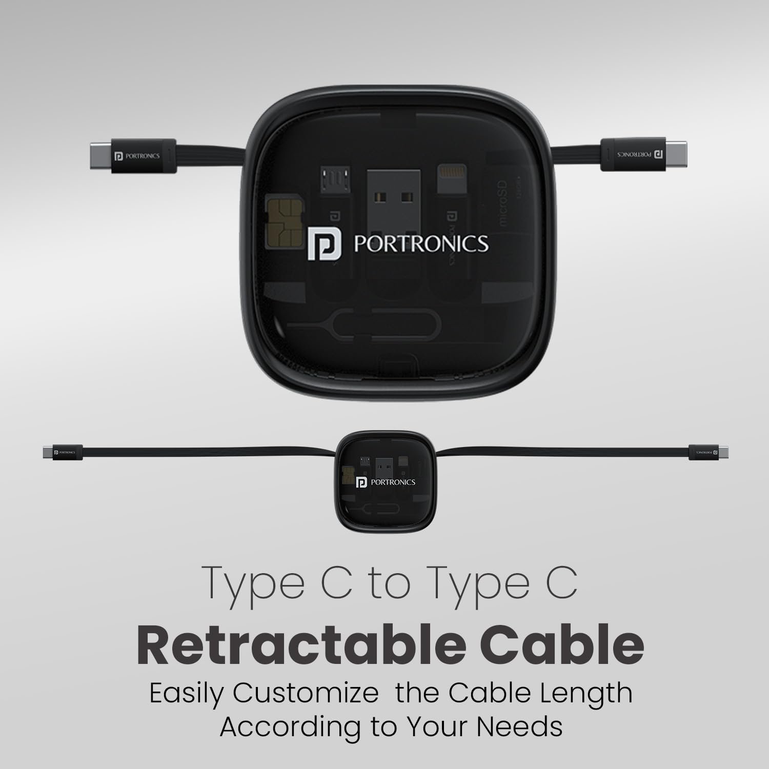 Portronics Snapcase 2 60W Multifunctional Fast Charging Data Cable Kit With Retractable Cable, Conversion Set USB A & Type C to Male Micro/Lightning,Sim Storage,Sim Eject Pin