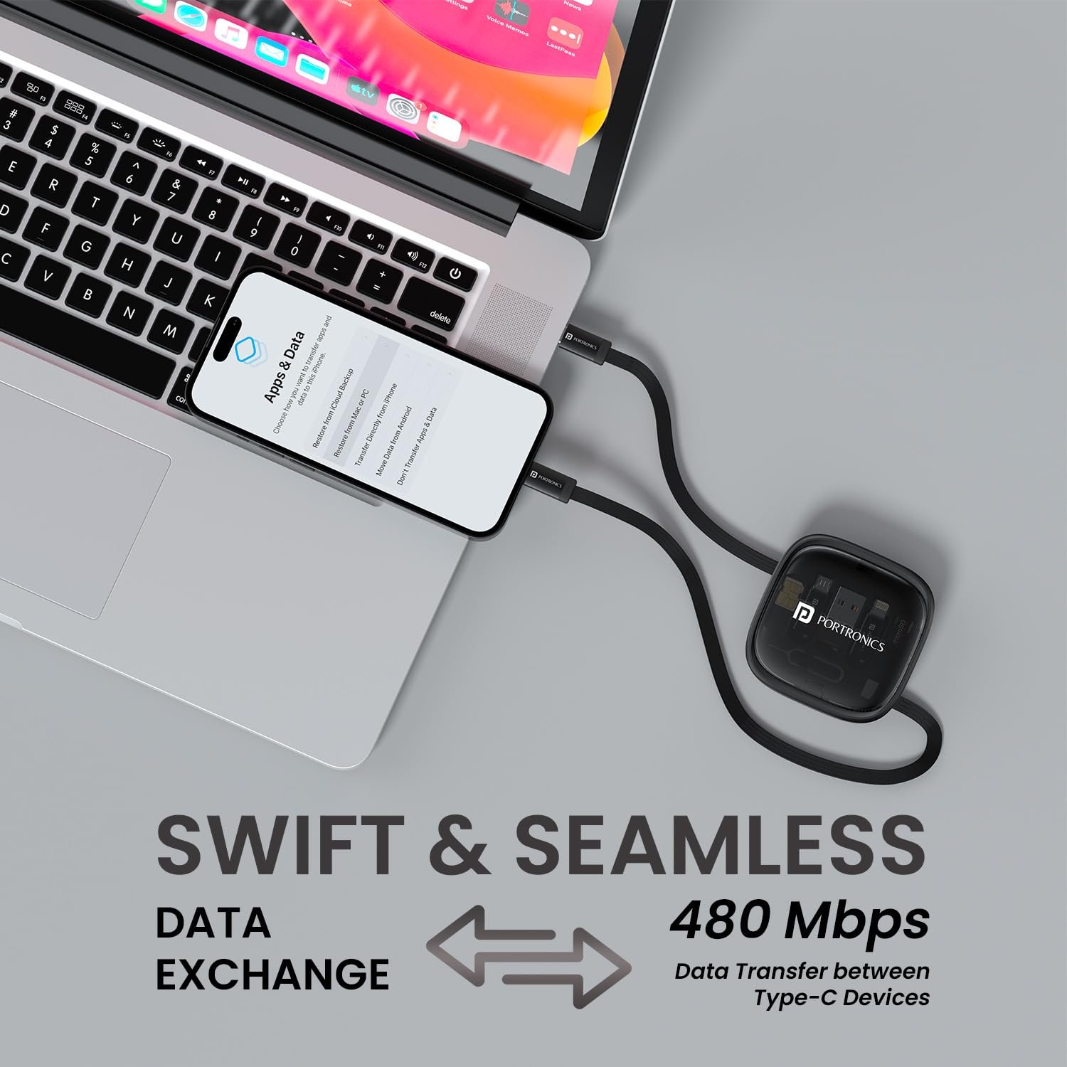 Multipurpose Cable Card: The case has allocated Type C to Type C Retractable Cable and Type C to Micro/ Lightning Cable. It can also hold a variety of converters and connectors including USB to Type C converter, Lightning to Type C converter and Type C to USB connector. Now the variety of cables and tiny connectors will not be lost if you have a Portronics SnapCase 2.