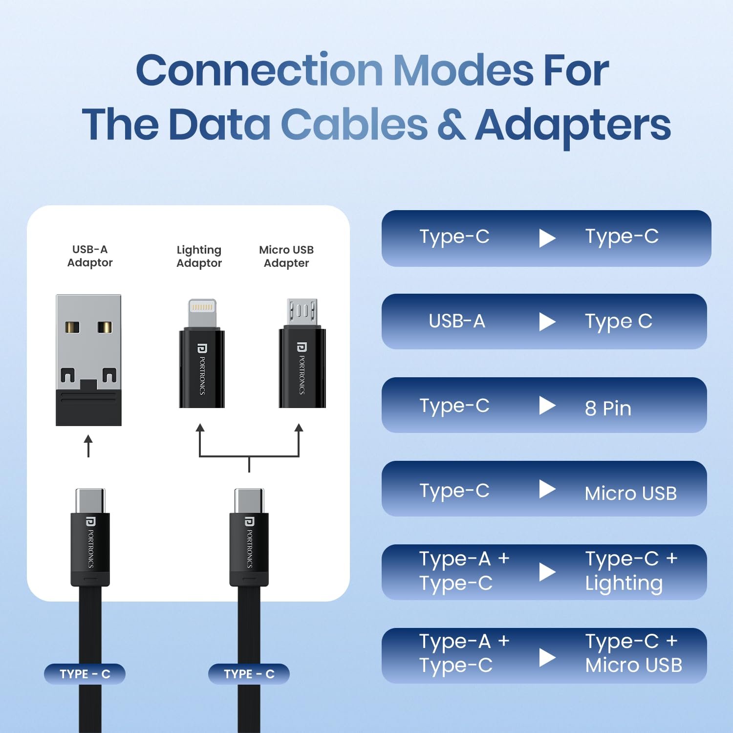 Versatile Connectors: Includes Type-C to Type-C cable, 8-pin lightning connector, USB-A Pin and Micro USB pin for compatibility with multiple devices like smartphones, tablets, and accessories.