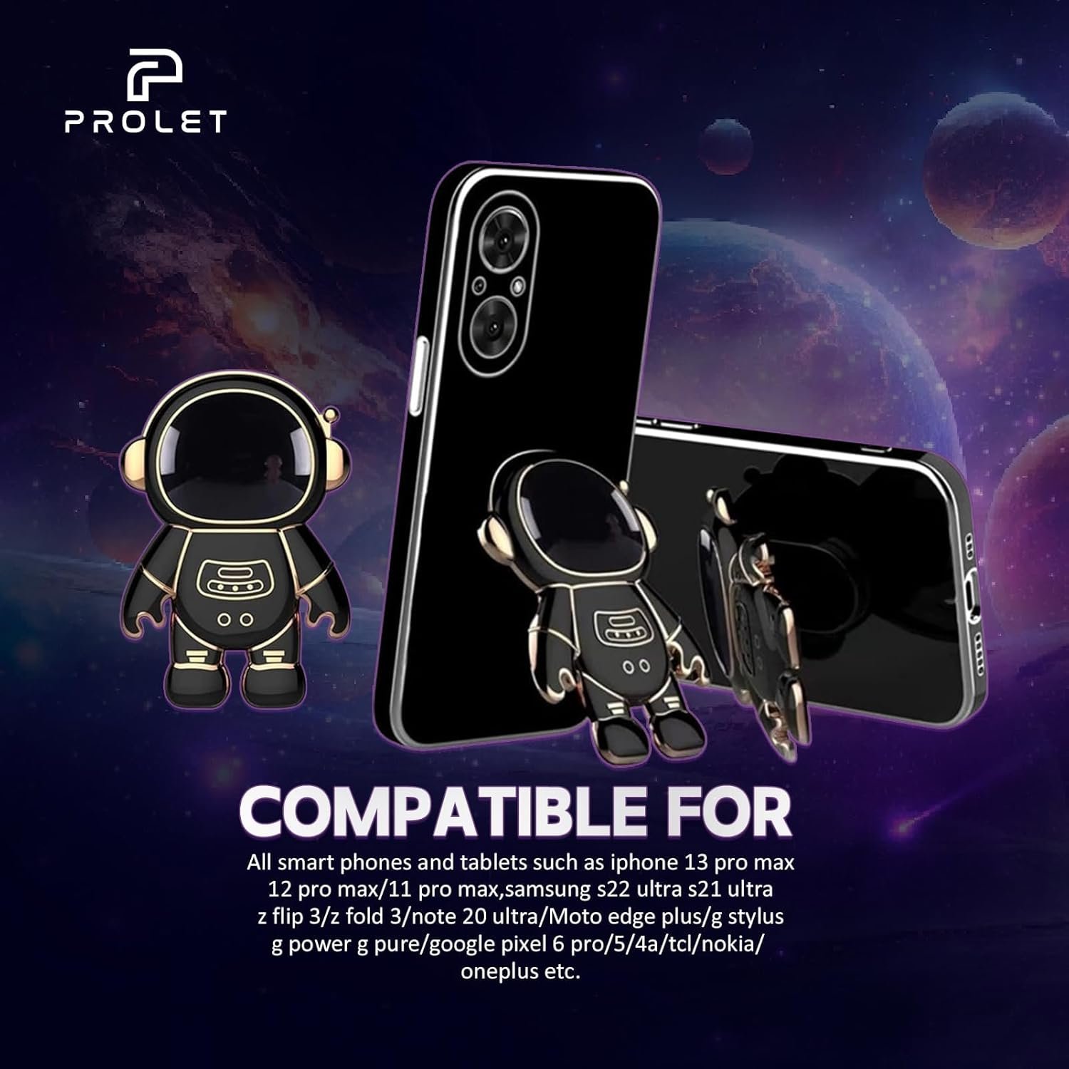 Prolet Cute Phone Stand Holder,Creative Astronaut Design Foldable Cell Phone Kickstand for Desk,Bling Creative Phone Ring Compatible All Phones and Tablets for Men & Woman-Black