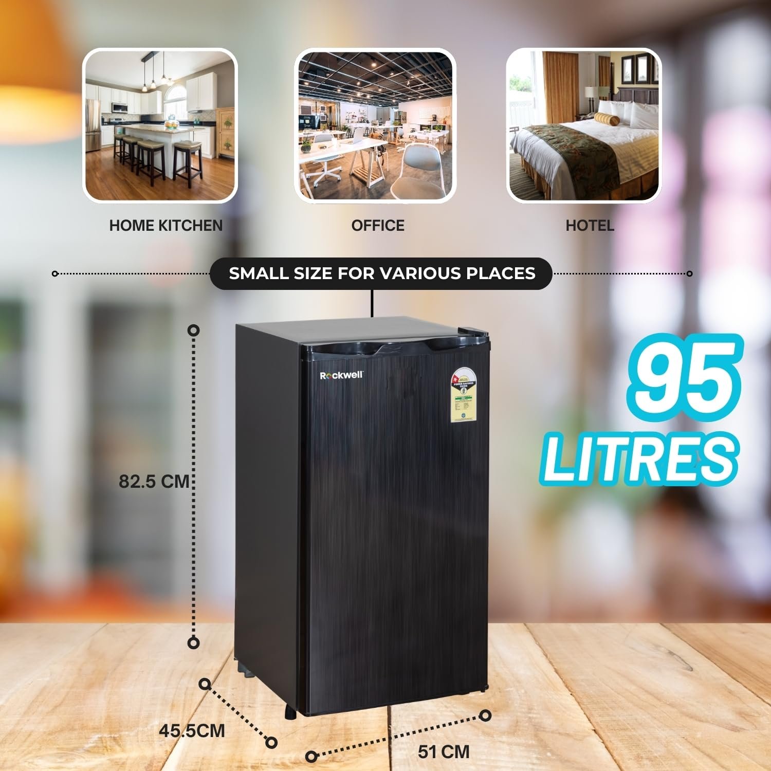 ROCKWELL 91L Mini Fridge with 5 Year Warranty, Direct Cool Technology, Single Door Refrigerator Ideal for Bedroom, Small Spaces, Hostels, and Offices, Grey