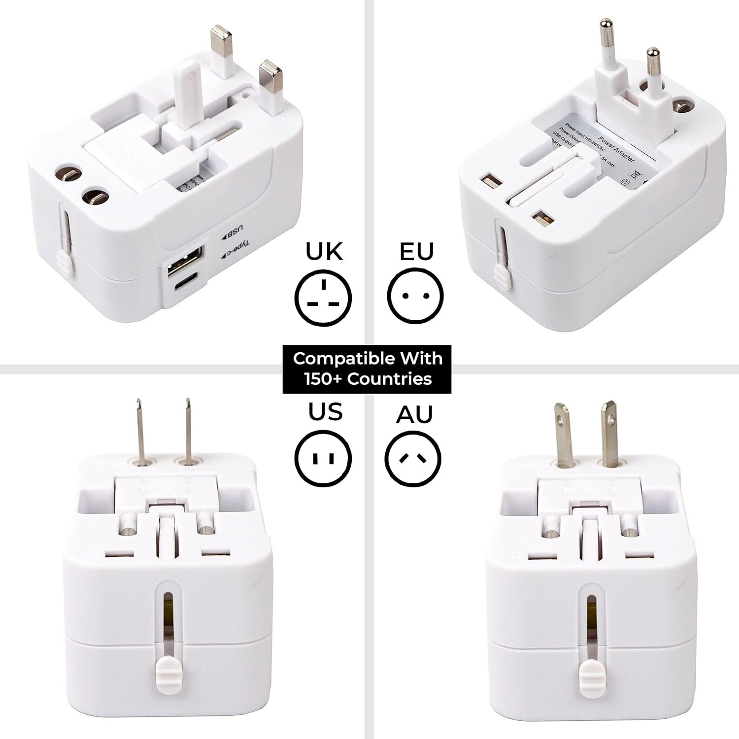 rts Universal Travel Adapter – Type C USB-C, 3-in-1 Universal Adapter Plug, Travel Accessory With 1 USB-C, 2.4A, All-In-One For Phone, Laptop, Mobile, Tablet, White